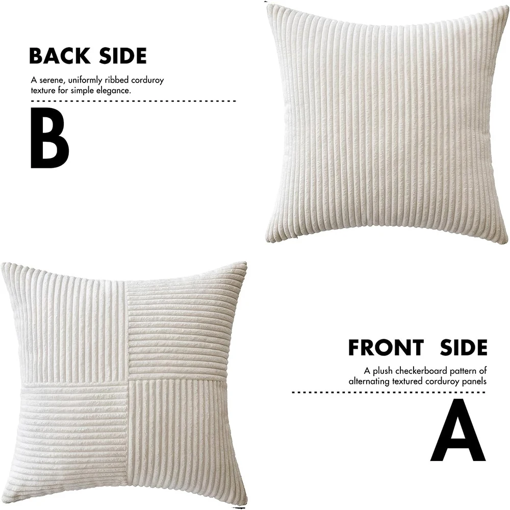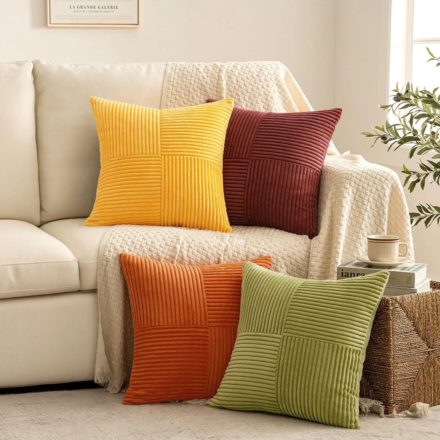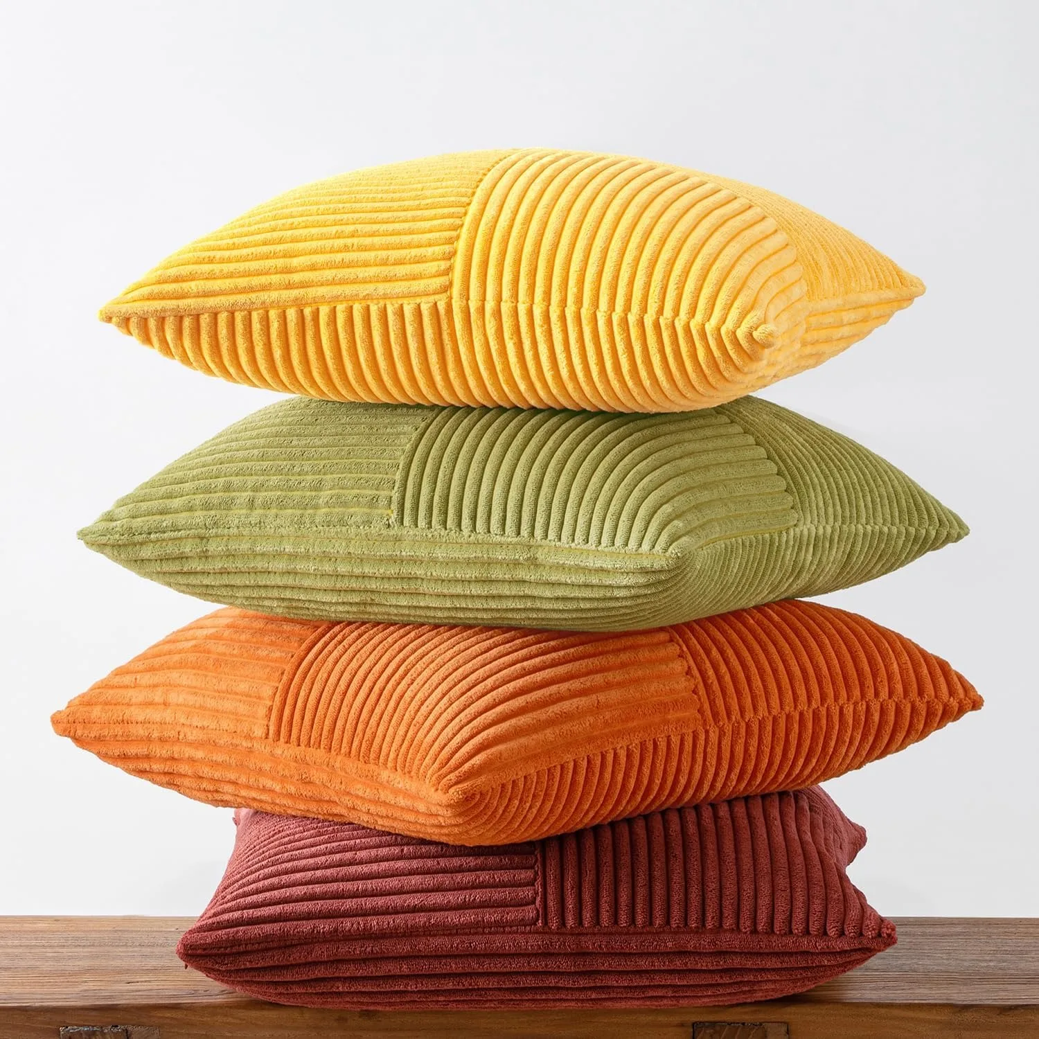 Teal Orange Decorative Throw Pillow Covers 18×18 Inch Boho Corduroy Striped Cushion Cases Modern Farmhouse Patchwork Pillow Cases