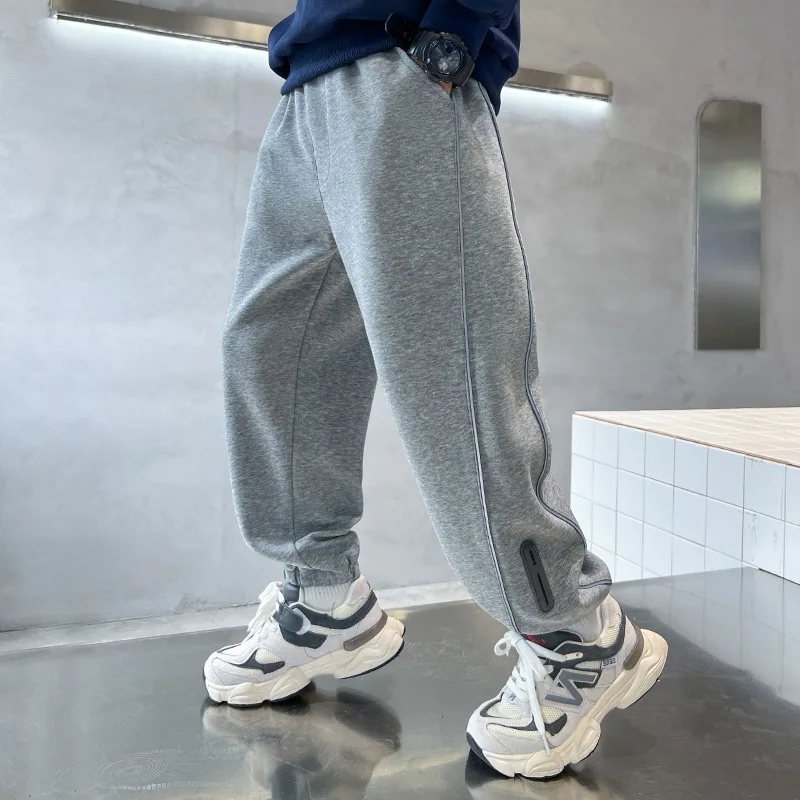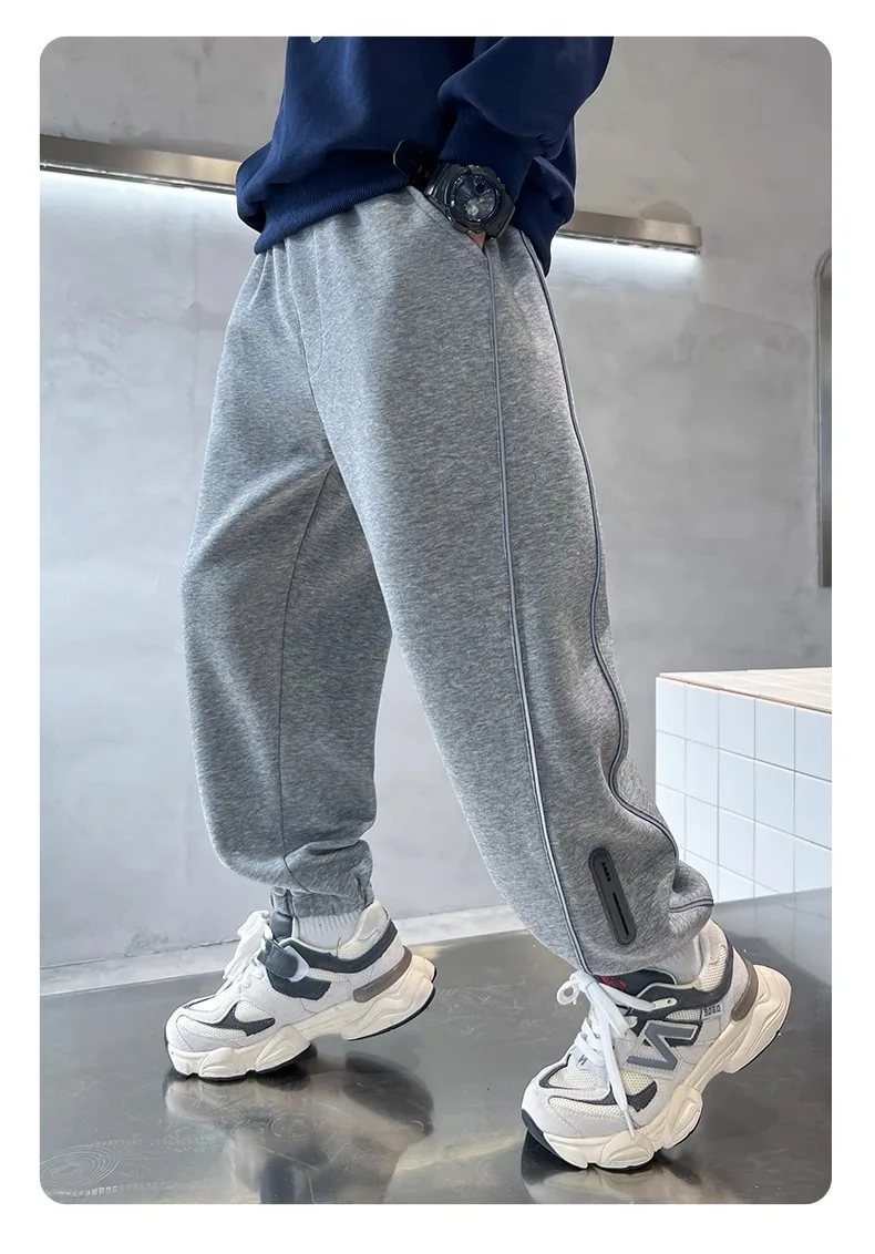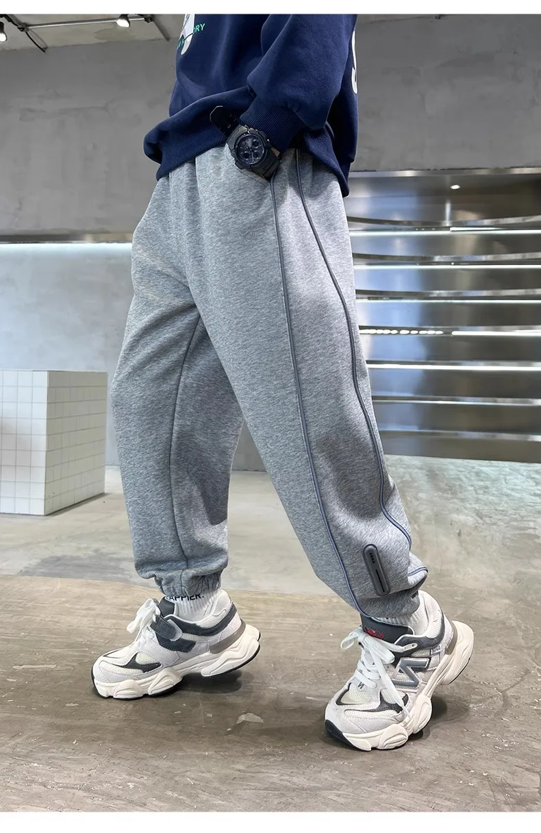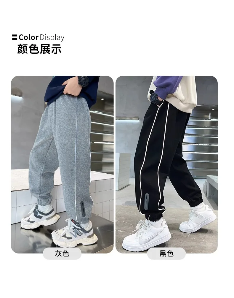 Grey Black Boys Running Pants Spring Casual Teen Clothing Reflective Children Sportwear Loose Trousers Kids Sweatpants Clothes