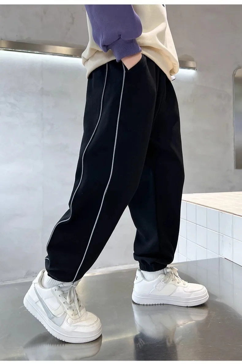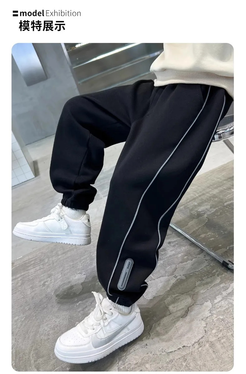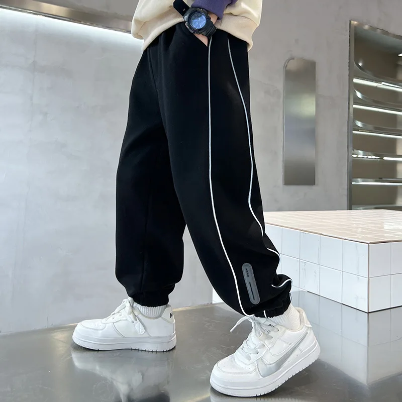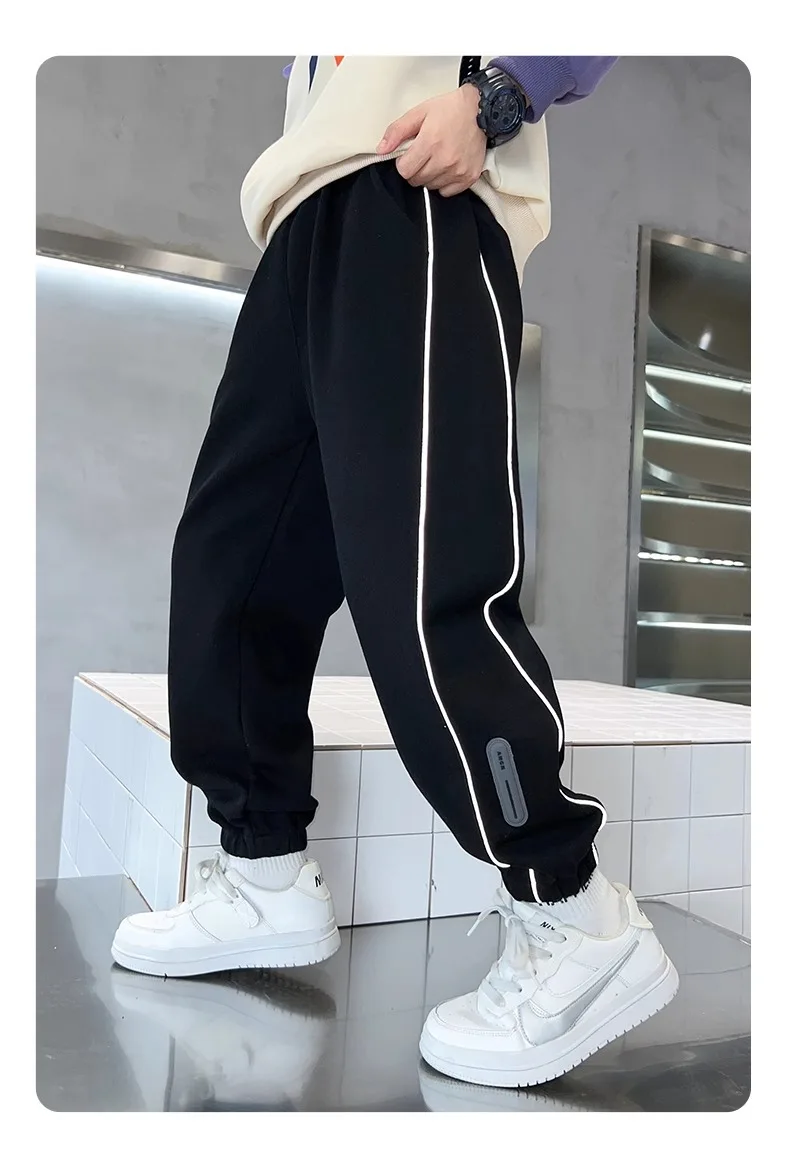Grey Black Boys Running Pants Spring Casual Teen Clothing Reflective Children Sportwear Loose Trousers Kids Sweatpants Clothes