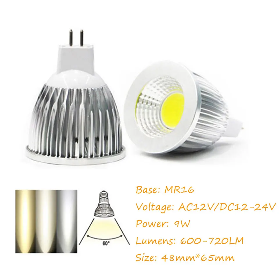gu10 Led Dimmable Bulbs E27 E14 MR16 AC DC 12V LED COB Spotlight 6W 9W 12W Spot Light Bulb High Power lamp AC 85-265V