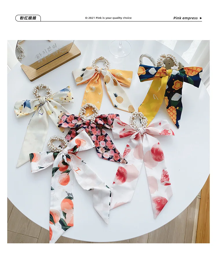 Hair Band Women’s Hair Binding Vintage Bow Headdress Pearl Hair Ring Binding Hair Bow Ribbon Headrope