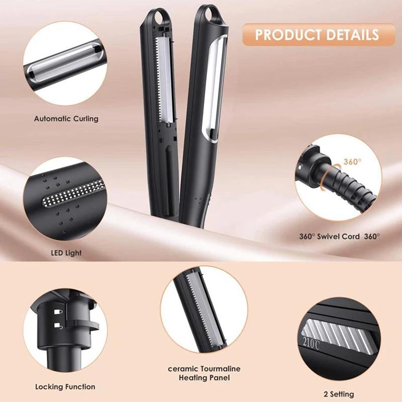 【Intelligent Temperature Control System】60s Rapid heating and 5 levels of temperature ( 140-160-180-200-220 ℃ / 284-320-356-392-428 °F ), Suitable for various hair types and needs. LCD screen display the real-time temperature.