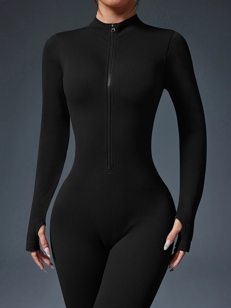 Half Zip Jumpsuit Women Gym Bodysuit Long Sleeve Activewear Set Running Workout Romper Fitness Overalls Sportswear Yoga Clothes