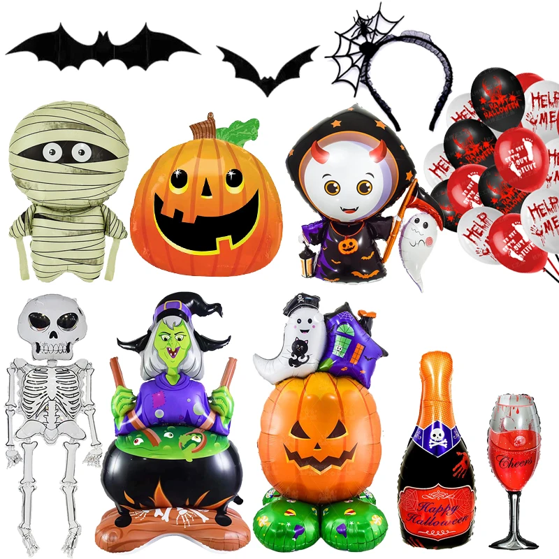 Halloween Balloons Standing Pumpkin Ghost Witch Hummy Halloween Large Foil Balloon Inflatable Decoration Door Kid Party Supplies