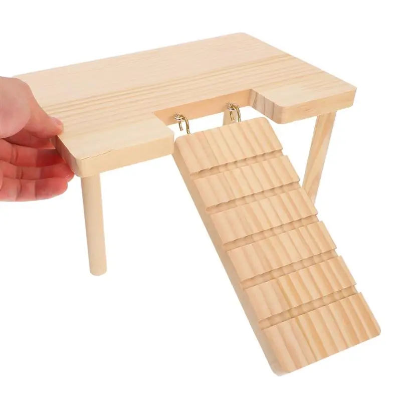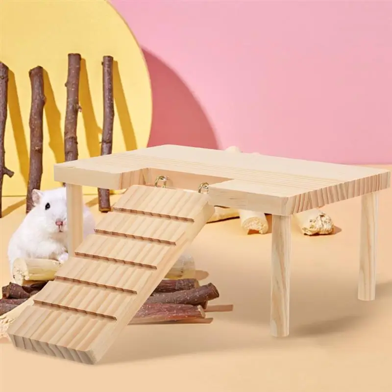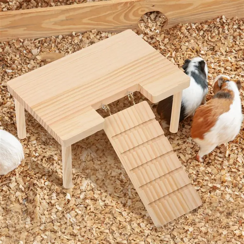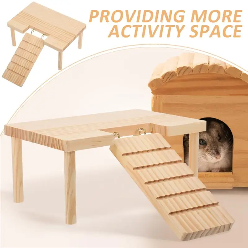 Hamster Platform with Ladder Wooden Guinea Pig Ramp Chinchilla Toy Rabbit Ramp Hamster Hiding Place Habitat Cabin Pet Supplies