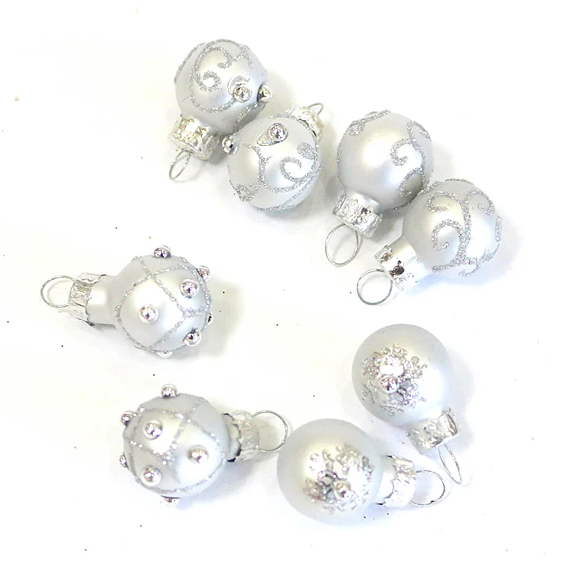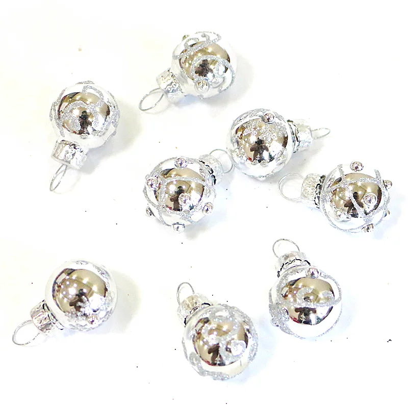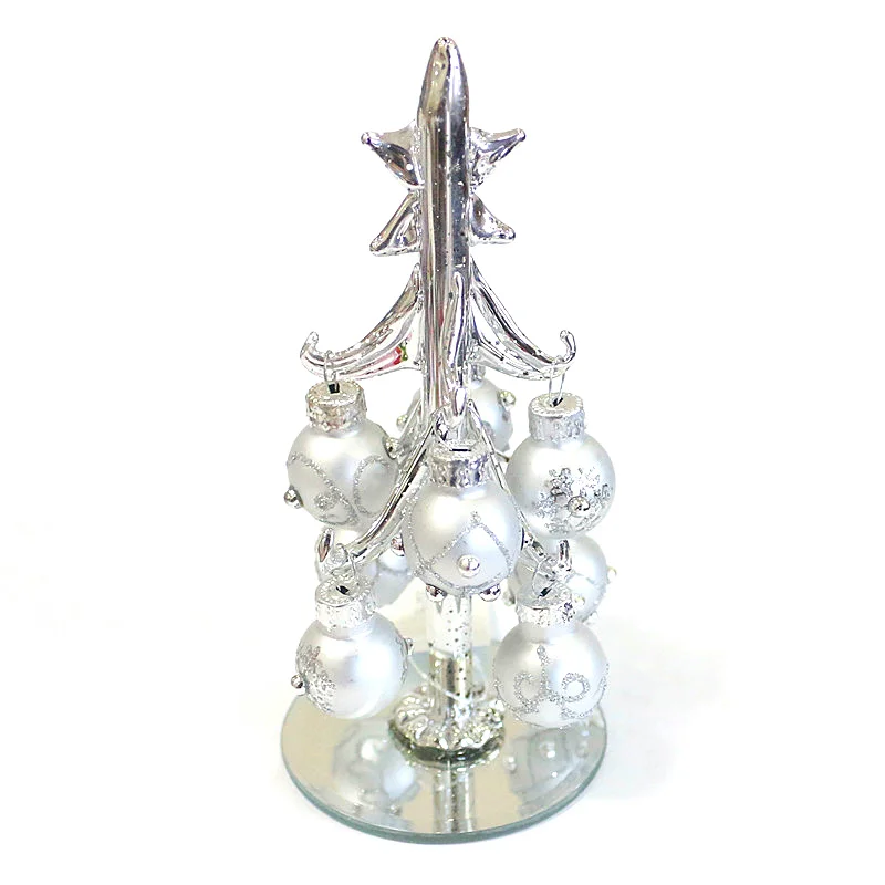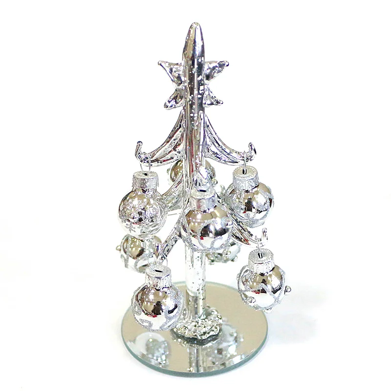 Hand-Blown Small Silver Glass Christmas Tree Decoration Ornament 13cm With 8Pcs Light Hollow Xmas Glass Ball Pendant Accessories