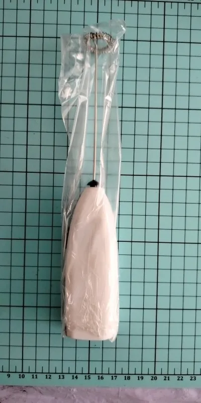 It's fine. The R6 batteries (2) that you need are not included. It works perfectly for its purpose (whipping cream, milk, etc.). Good purchase.
