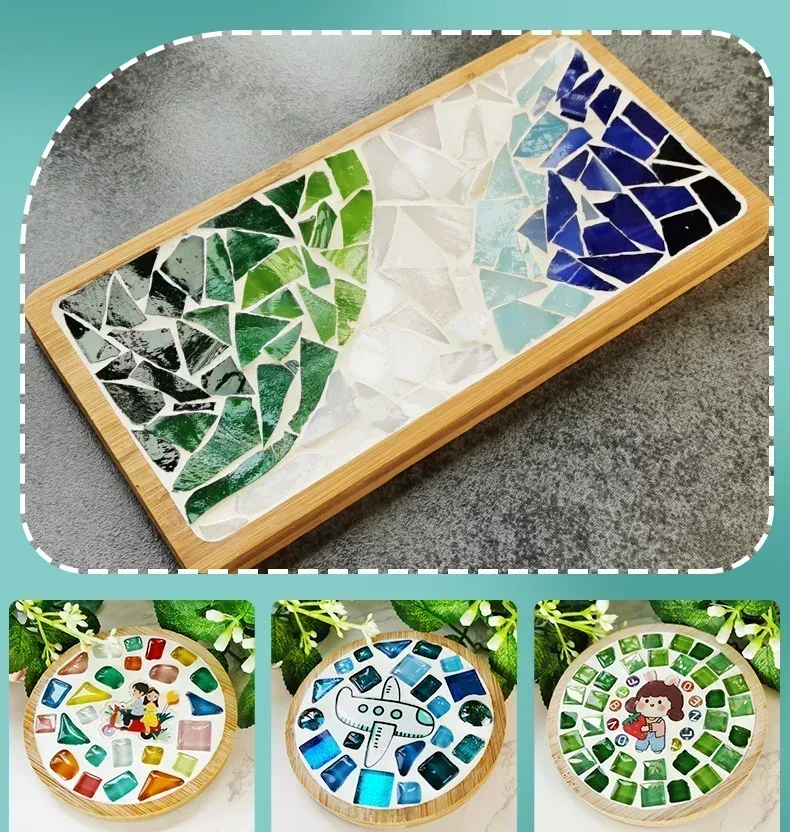 Main materials: Crystal glass mosaic, Bamboo bottom pad