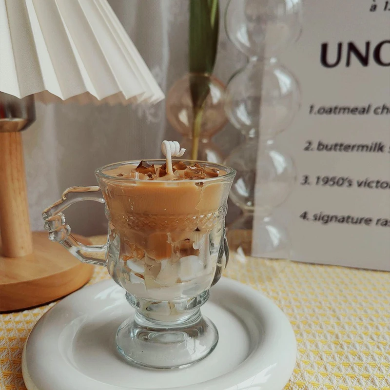 Handmade Hand-Poured Soy Wax American Iced Coffee Scented Candle Glass Latte Aromatherapy Ornament for Home Decor