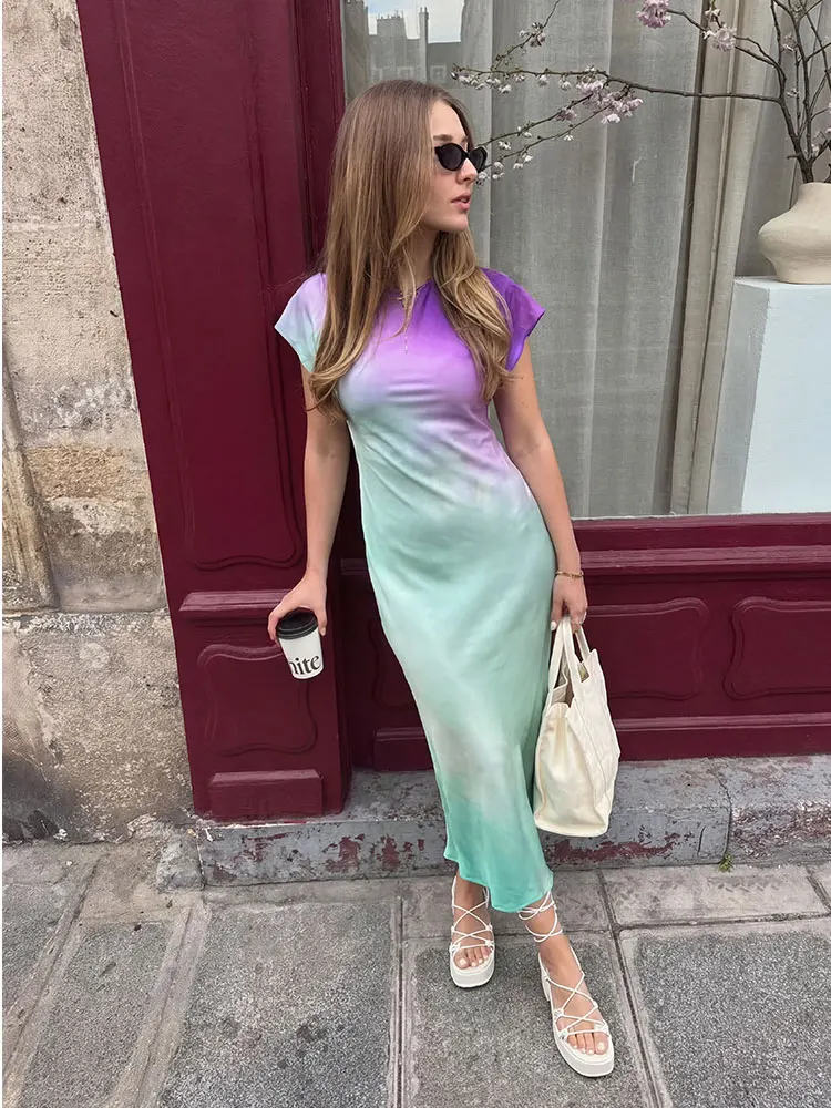HH Women’s Fashion Print Short Sleeve Dress Vintage Tie Dye O-Neck Midi Dresses Spring