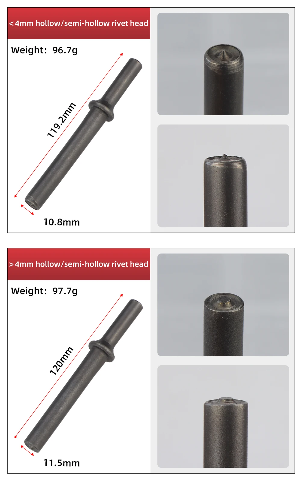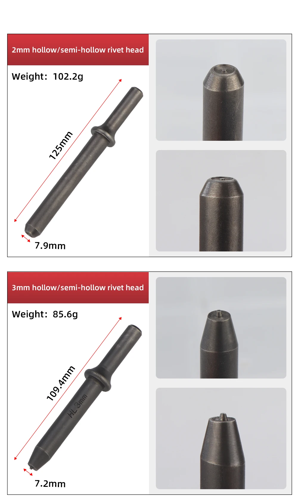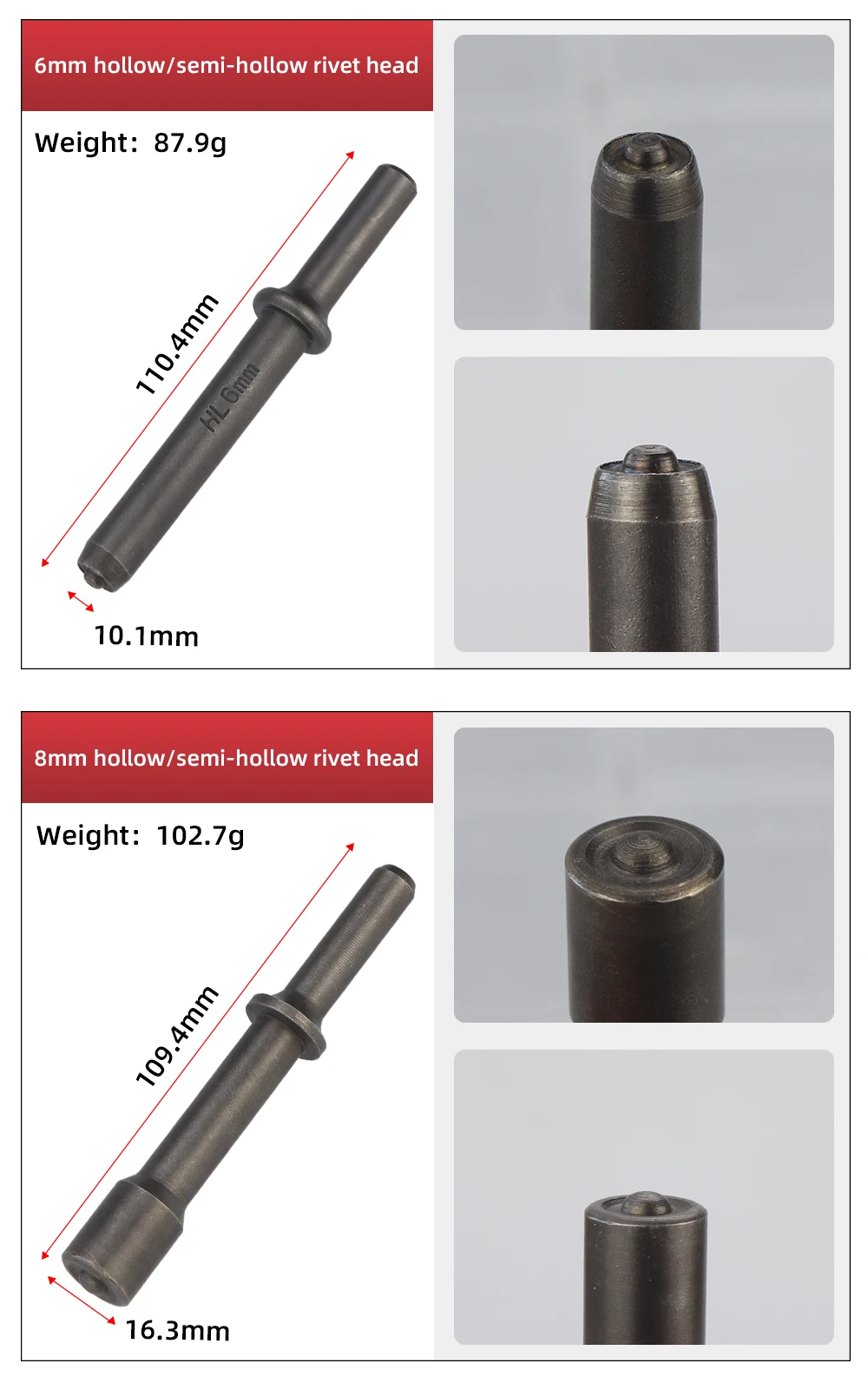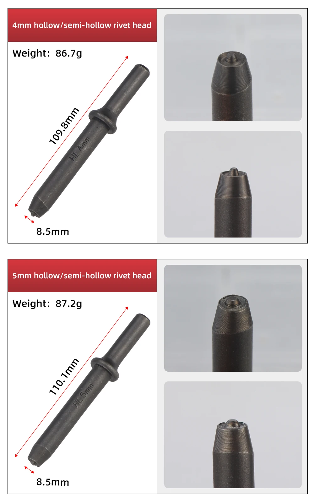 HIFESON Air Hammer Rivet Heads Pneumatic Hammer Chisels Rivet Gun Accessories Riveting Tools For Semi-hollow Rivets Solid Rivets