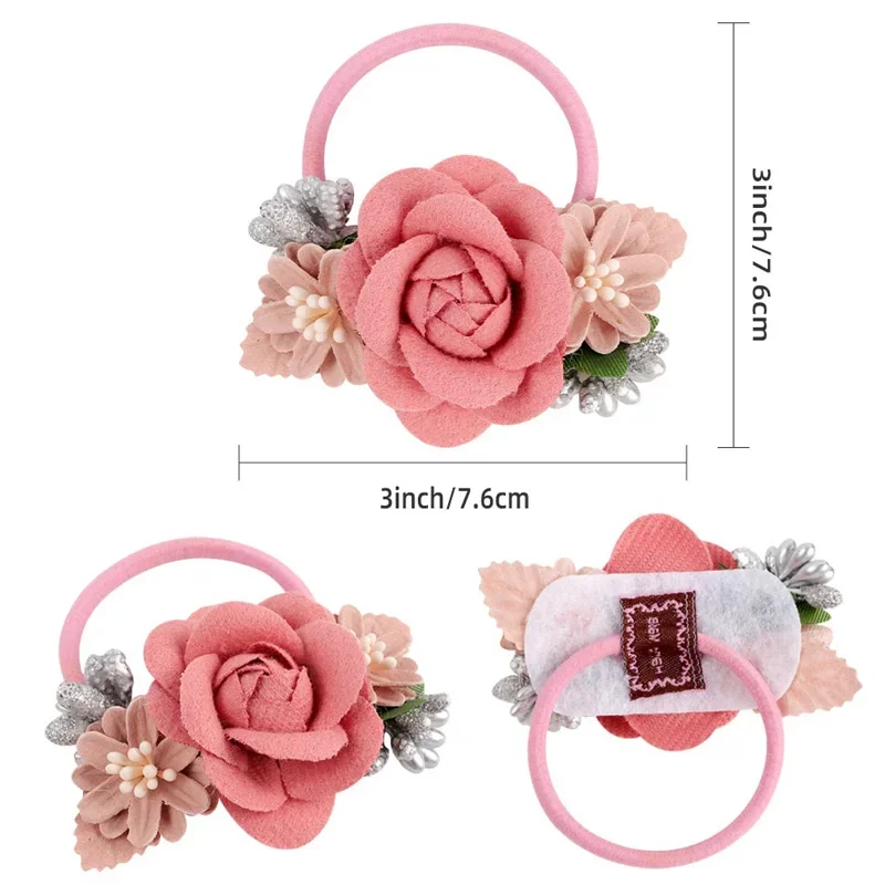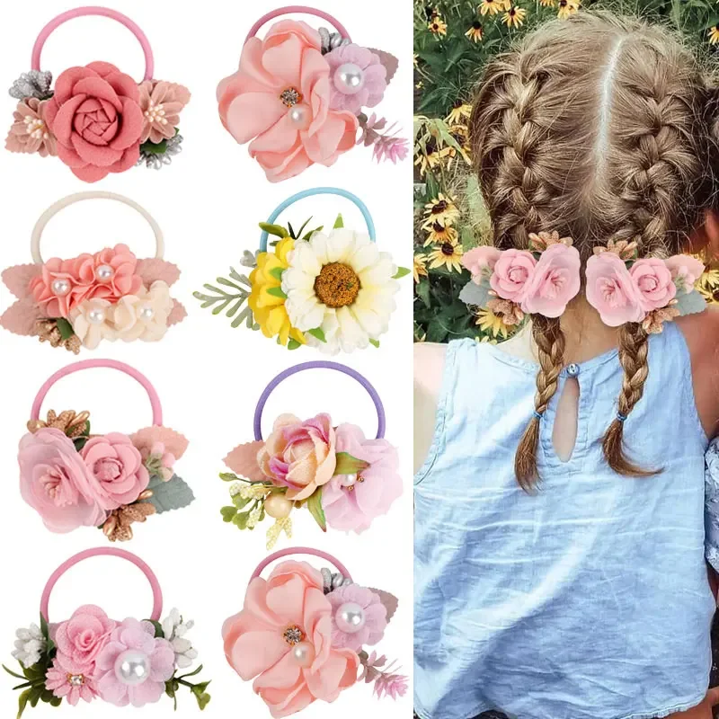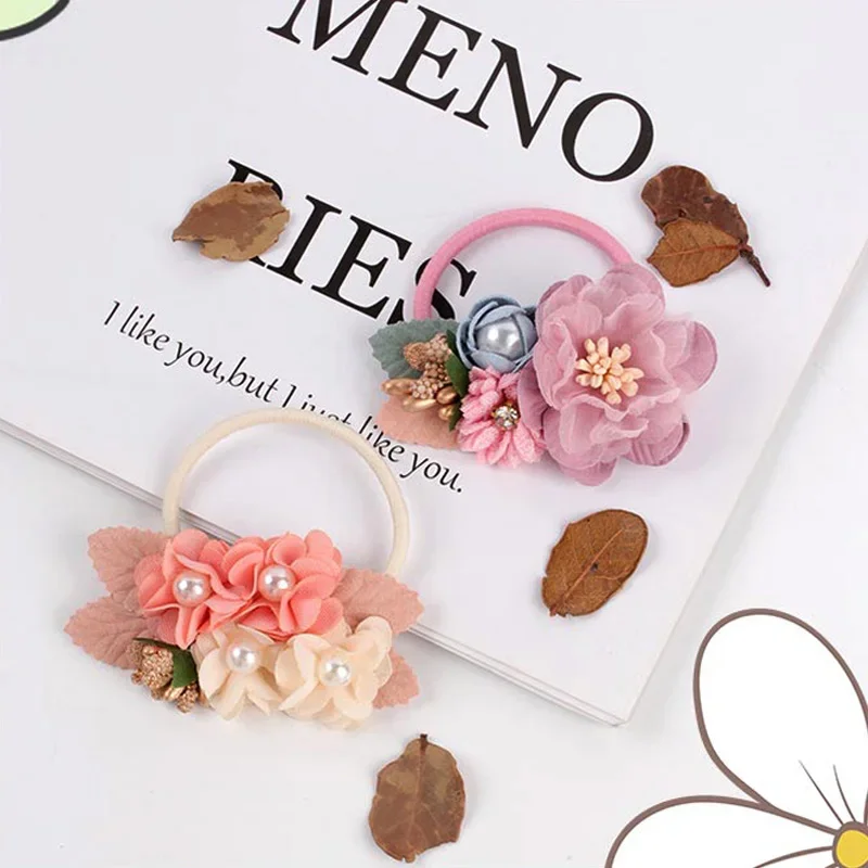 High Elastic Hair Bands Rose Flower Peal Girls Hair Scrunchies Sweet Kids Rubber Bands Ponytail Tie Hair Accessories