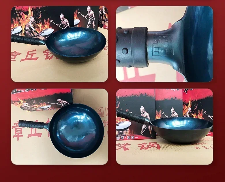 High-Grade Handmade Iron Pan Without Coating Health Wok Non-Stick Pan Gas Stove Induction Cooker General Zhangqiu Iron Wok 36CM