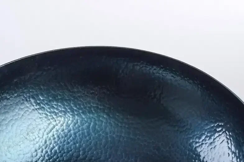 we will season the iron pan before shipment, its color will become dark blue, that is, when you receive the package, the iron pan is dark blue.