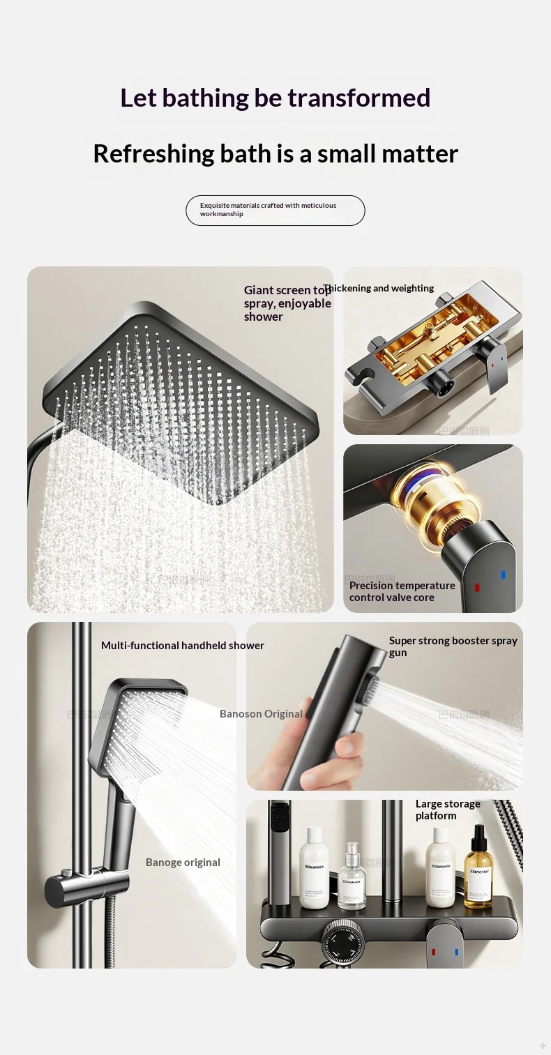 Be the first to review “High Pressure Precision Brass Rain Shower Set Luxury Wall Mounted Shower System Handheld Thermostatic Mixer Valve Titanium Gray”