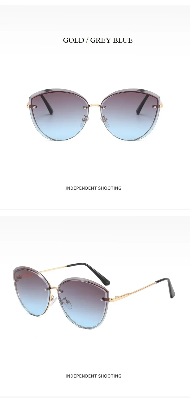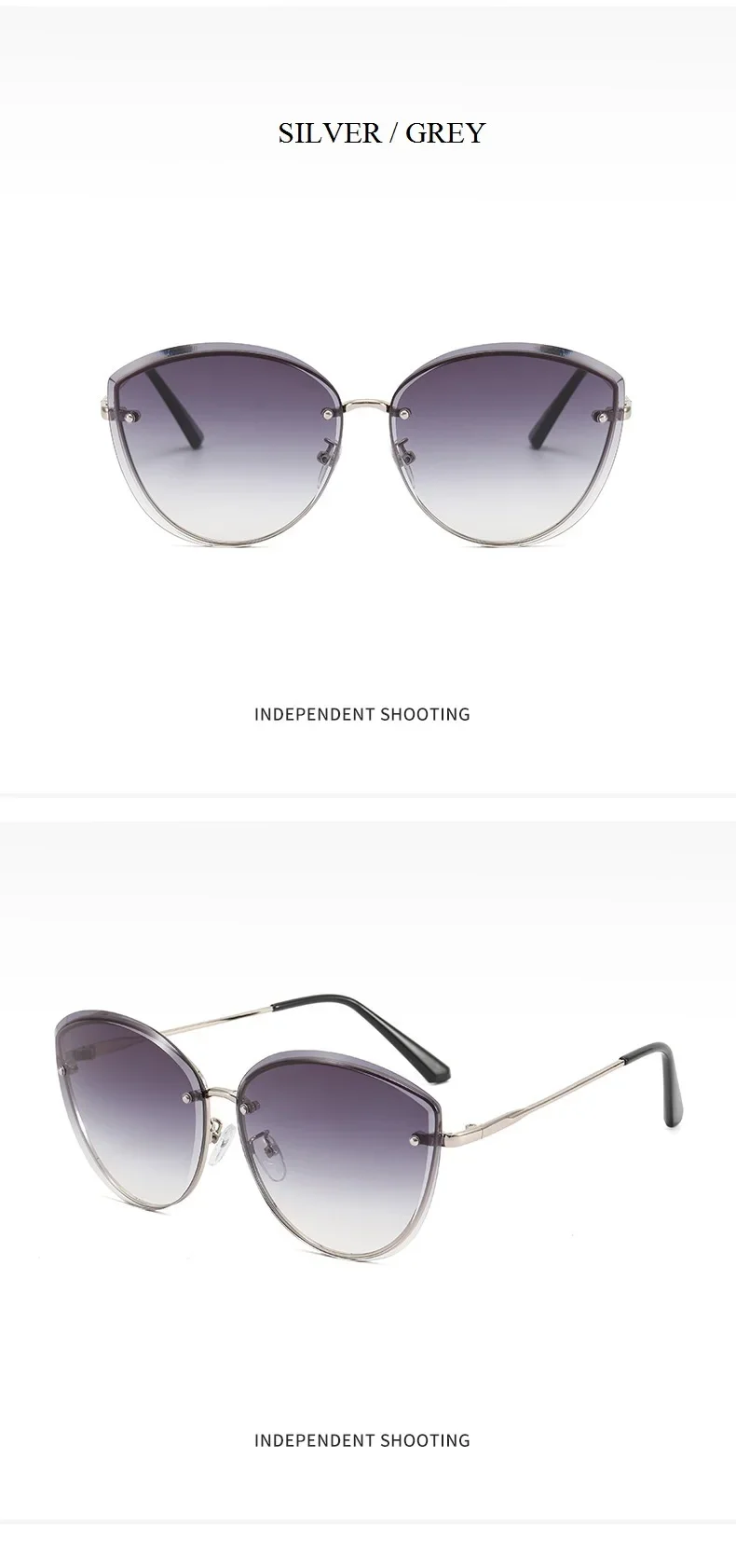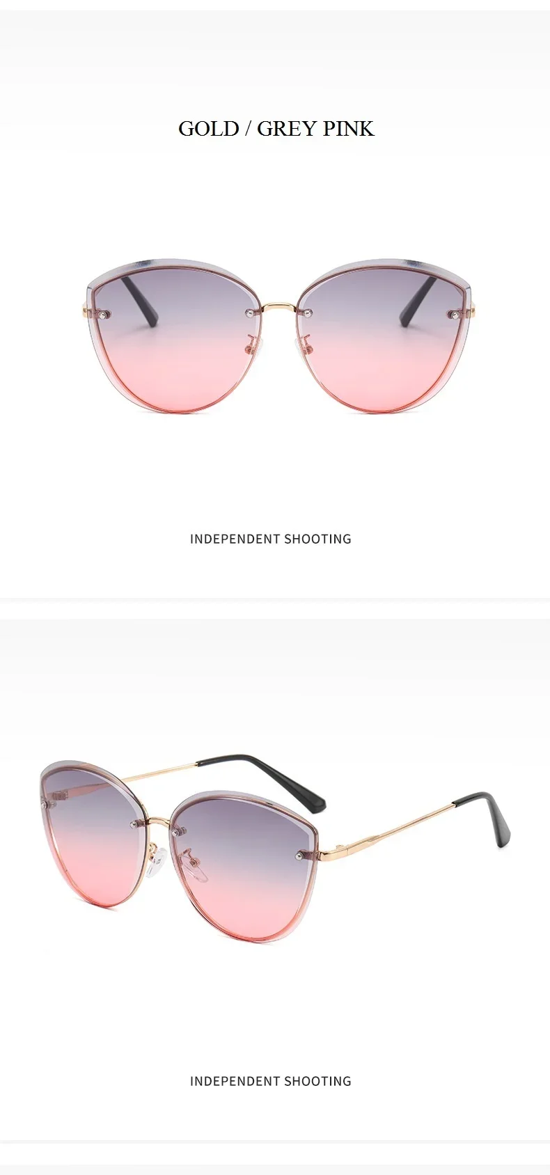 High Quality women’s Oval Rimless Sunglasses Lady Metal Cay Eye Shades for Women Driving Glasses Sonnenbrille Zonnebril Dames