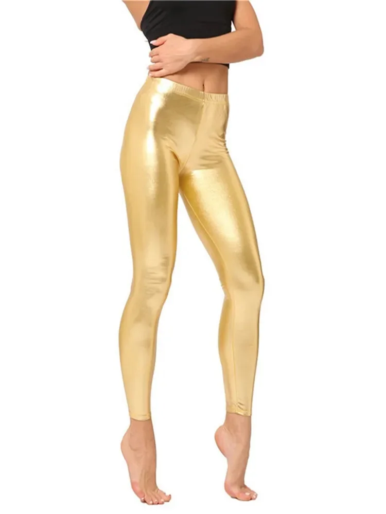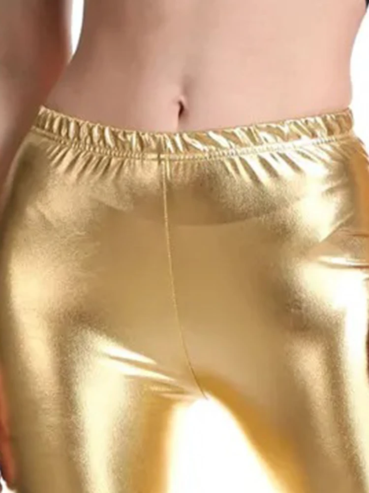 High stretch nine-point pants Yellow imitation leather fashion solid color leggings PU leather pants bright color leggings