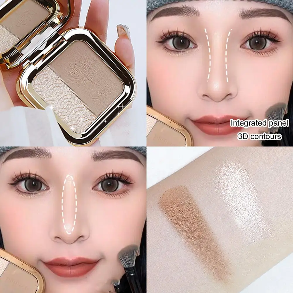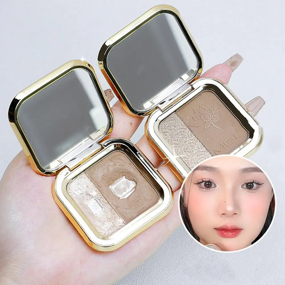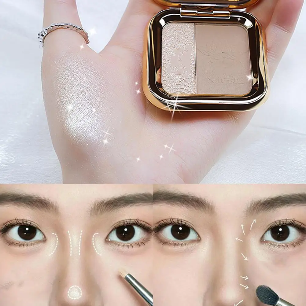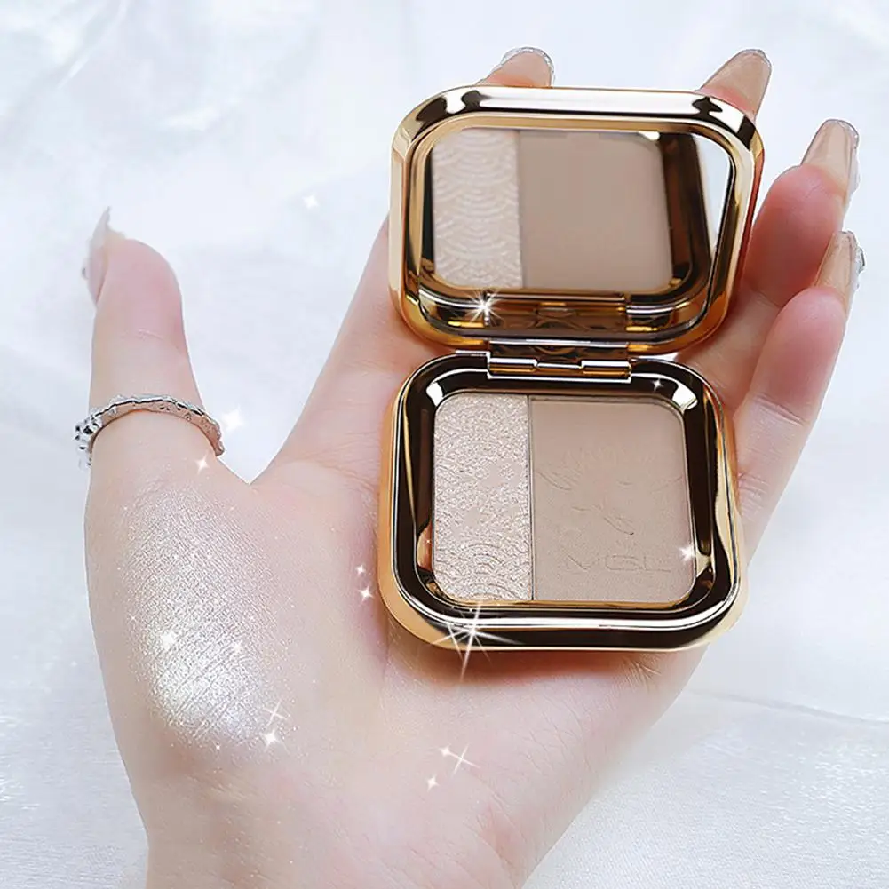 Highlight Contour Palette Shimmer Highlighter 3D Sculpting Compact with Mirror Long Lasting Radiance for Natural Finish