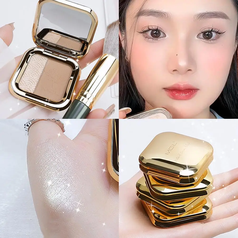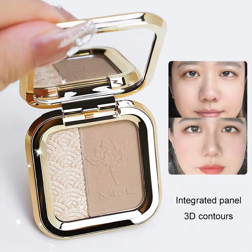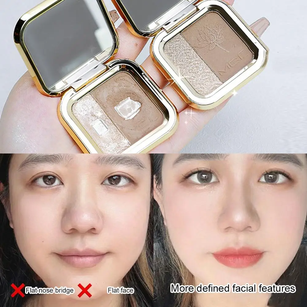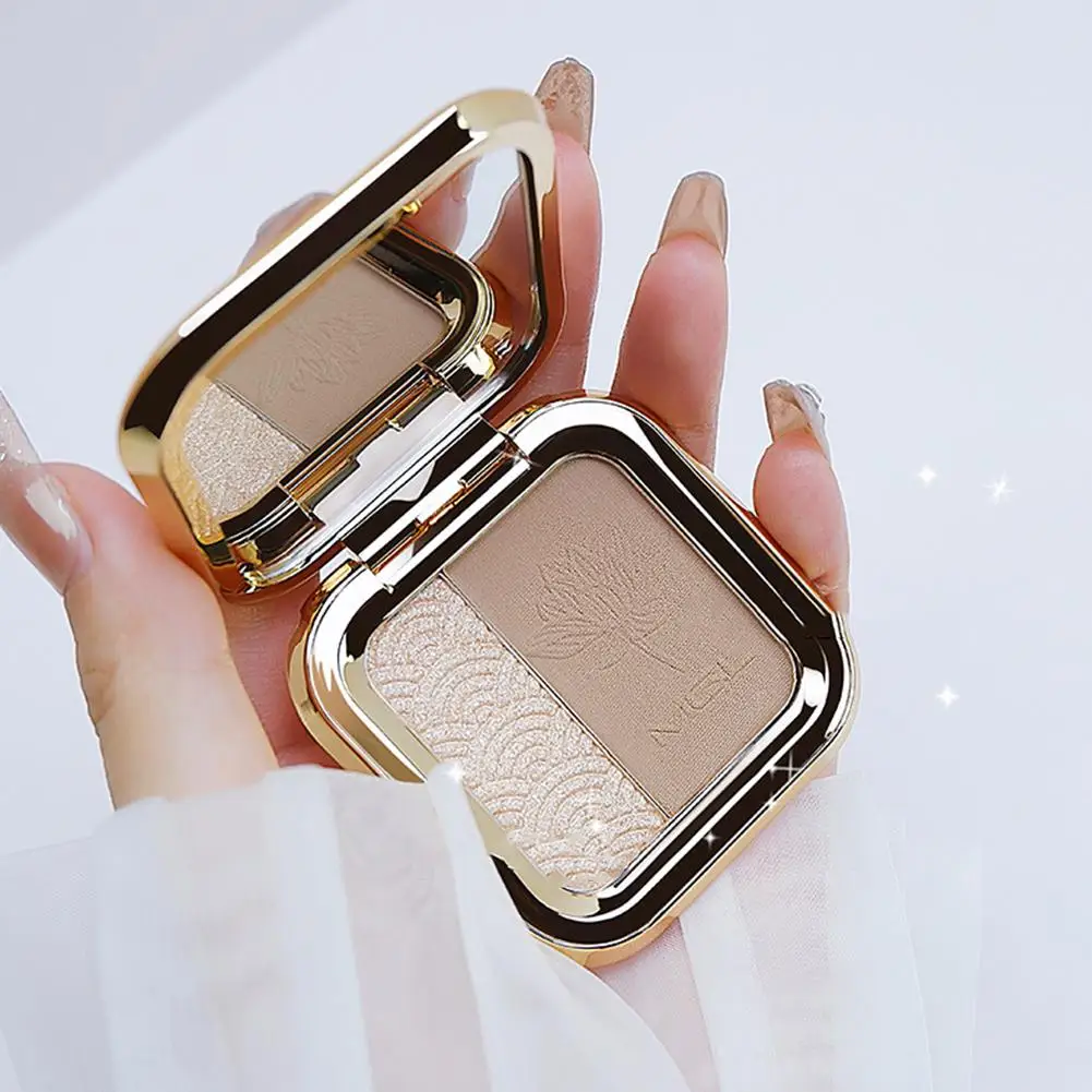 Highlight Contour Palette Shimmer Highlighter 3D Sculpting Compact with Mirror Long Lasting Radiance for Natural Finish
