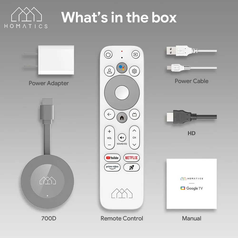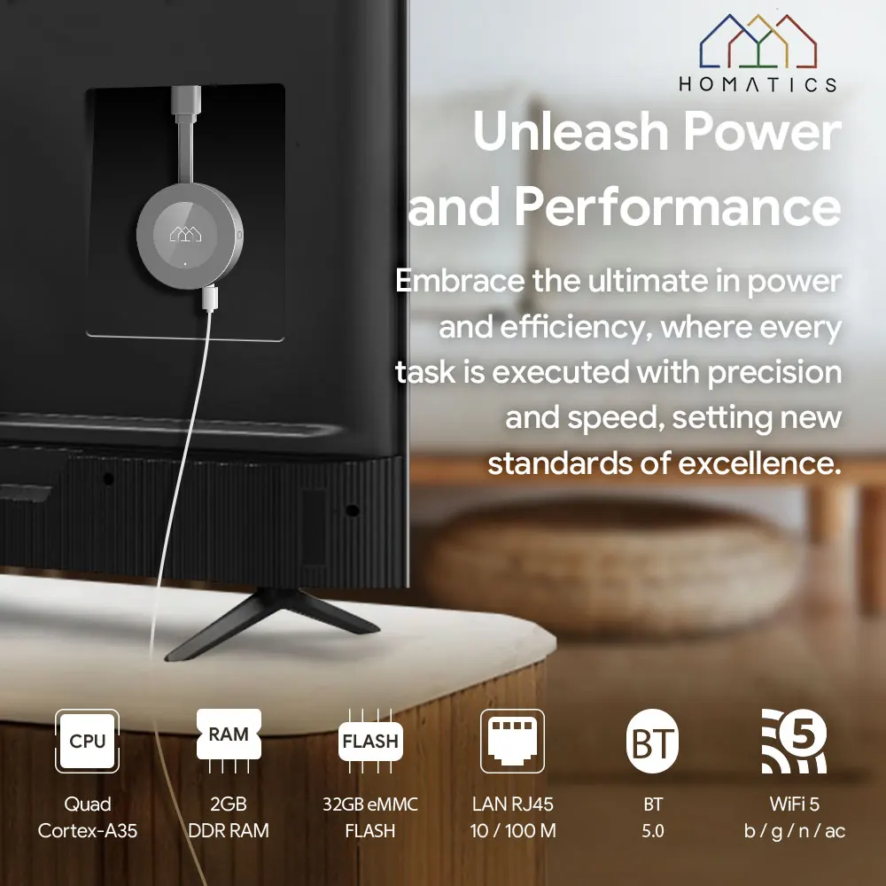 • 4K TV Stick :Experience the best in video quality with the Homatics 4K TV Stick, offering crisp, clear, and vibrant colors on your TV screen.