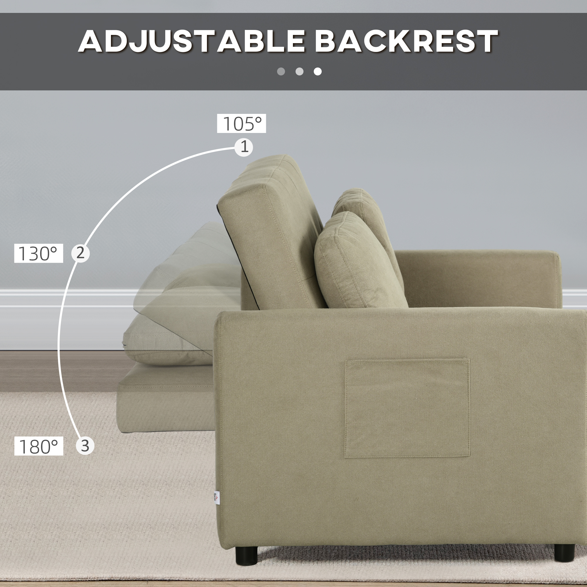 ● Three back angles: 105°, 130° and 180°