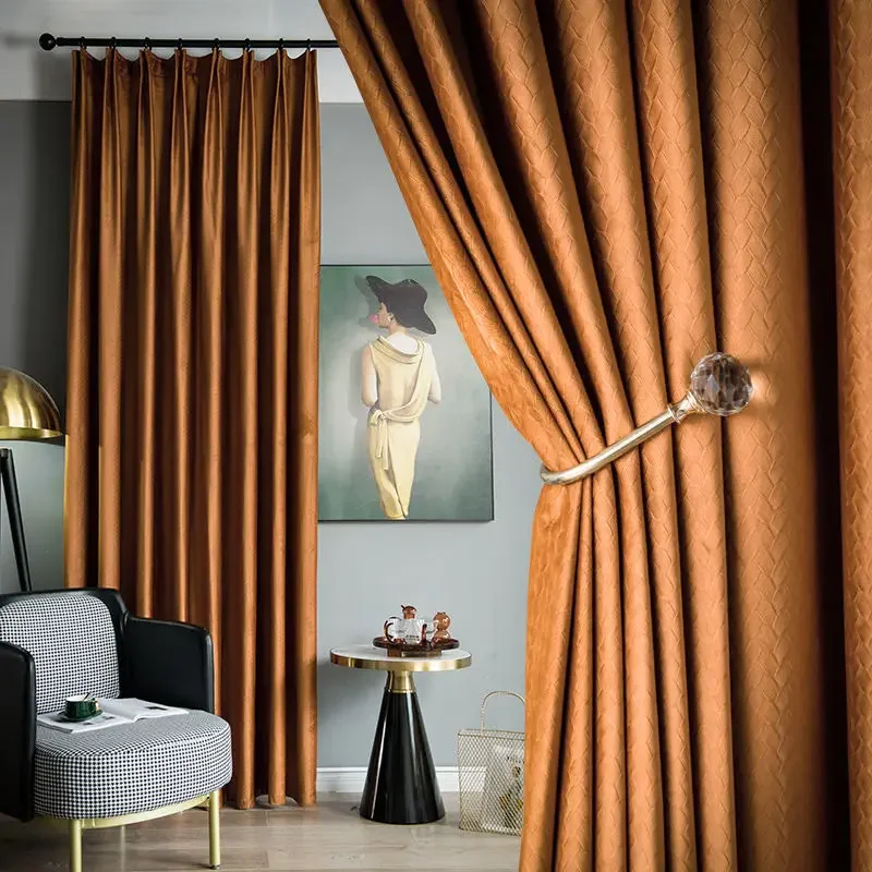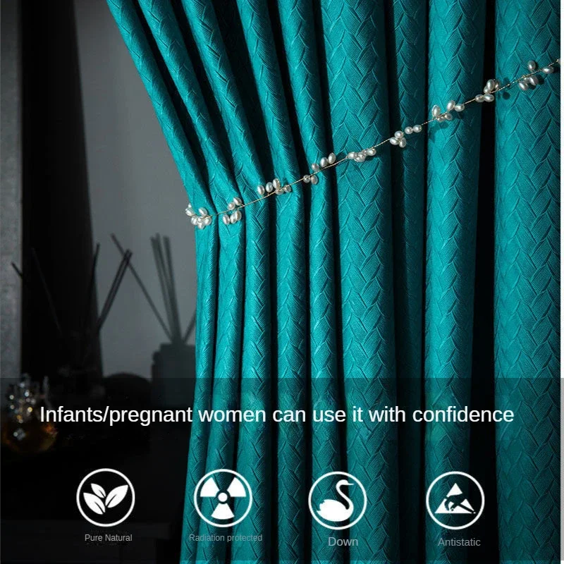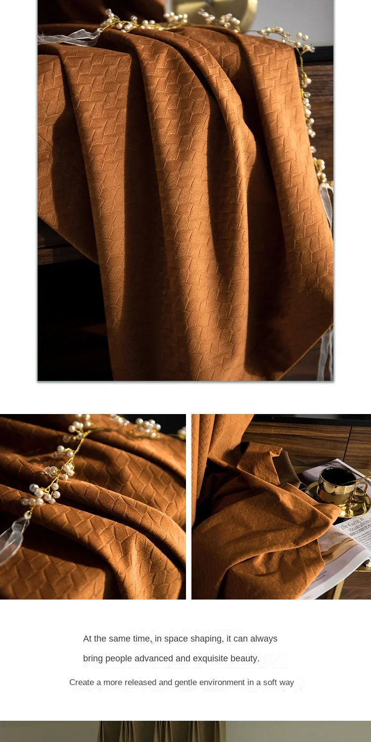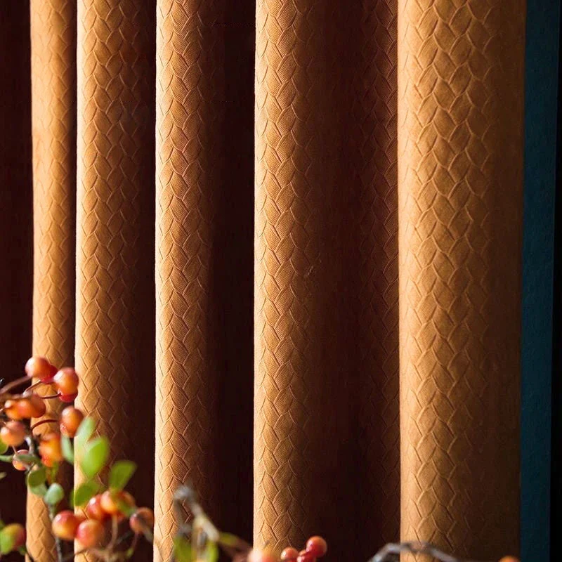 Home Art High-end Curtains for Living Room Luxury Bedroom Blackout Curtain Solid Color Japan Style Fishbone Pattern Room Drapes