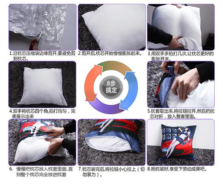 5. Unzip the pillow case. Fold the core and put it inside the case.