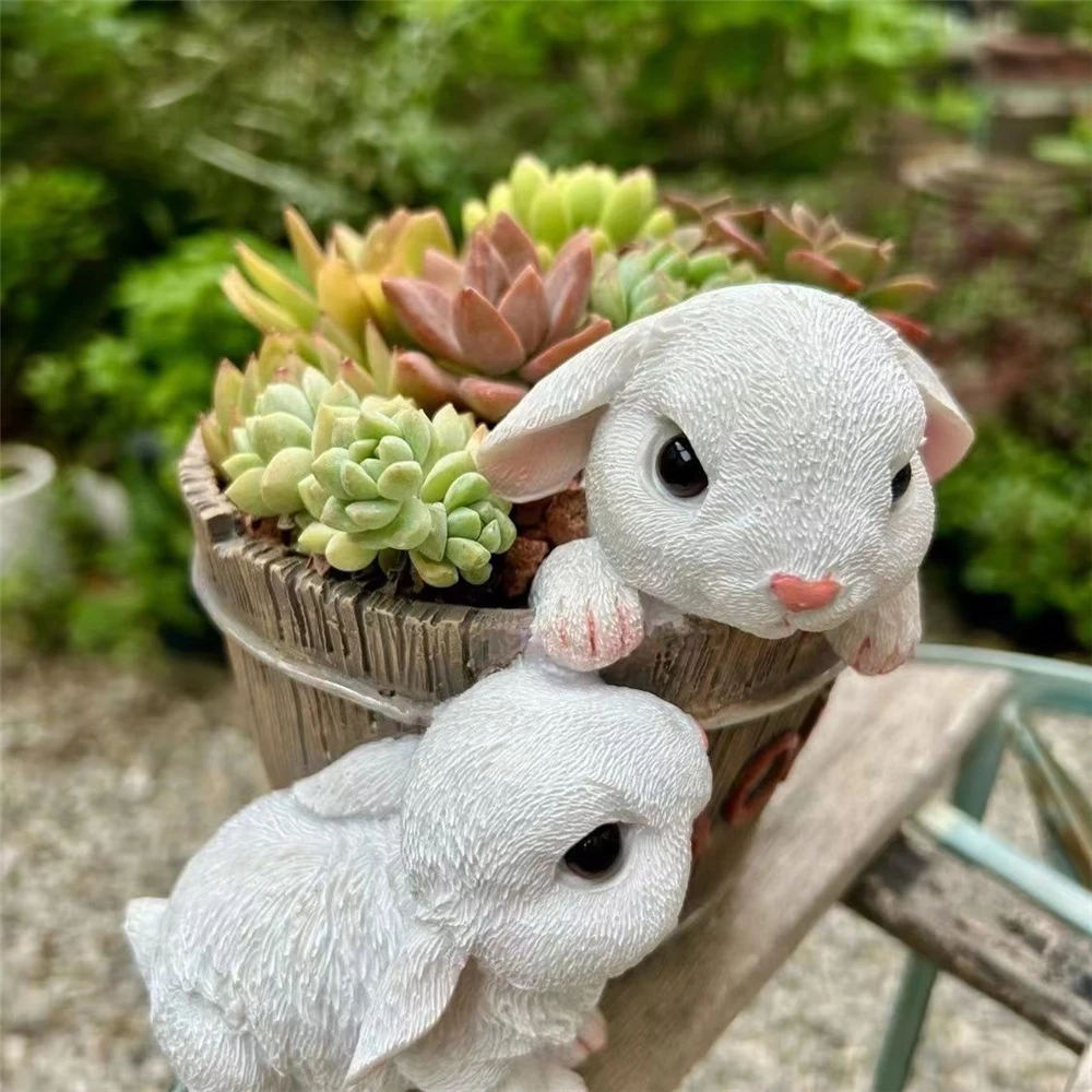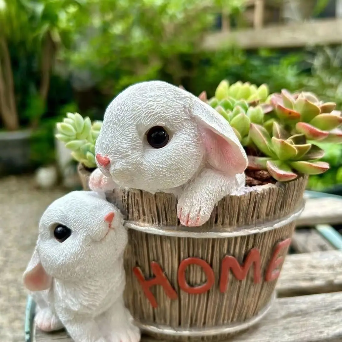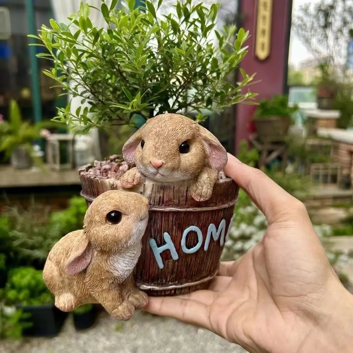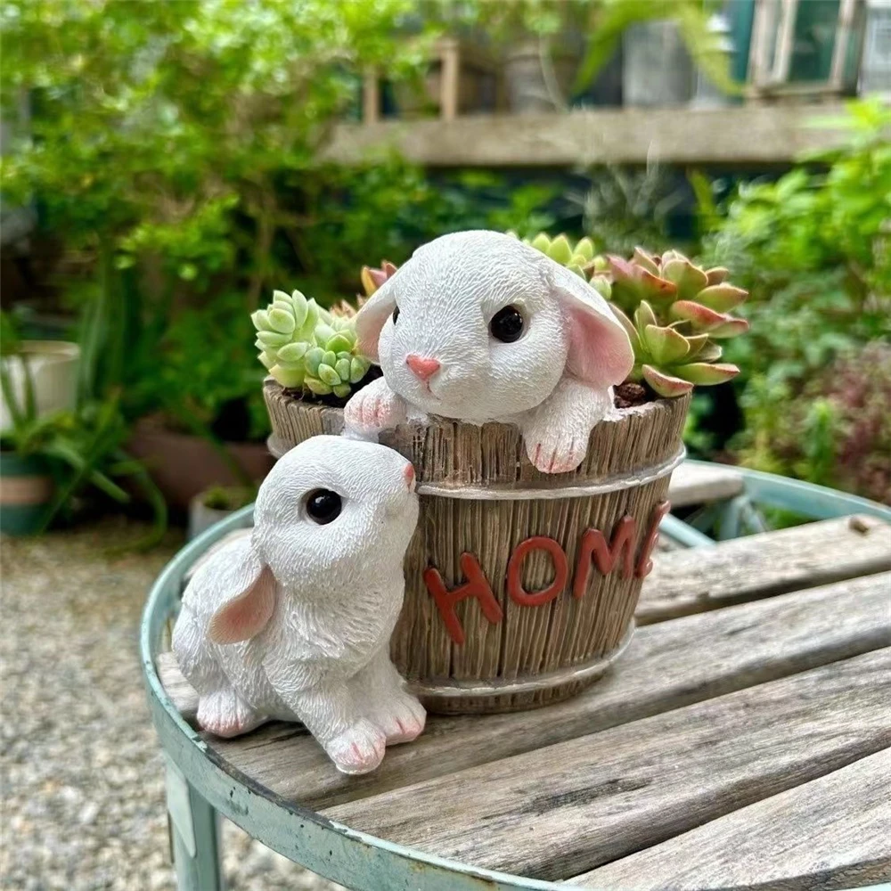 Home Symbol Flowerpot Animal Rabbit Succulent Planter Pot Bunny Decorative Planters for Plants Desktop Garden Statue Decoration