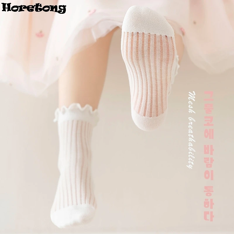 Horetong 4 Pairs/Set Kids Middle Tube Socks Spring Summer Solid Cotton Socks Cute Korean For Baby Girls Clothing Accessories