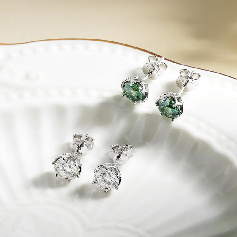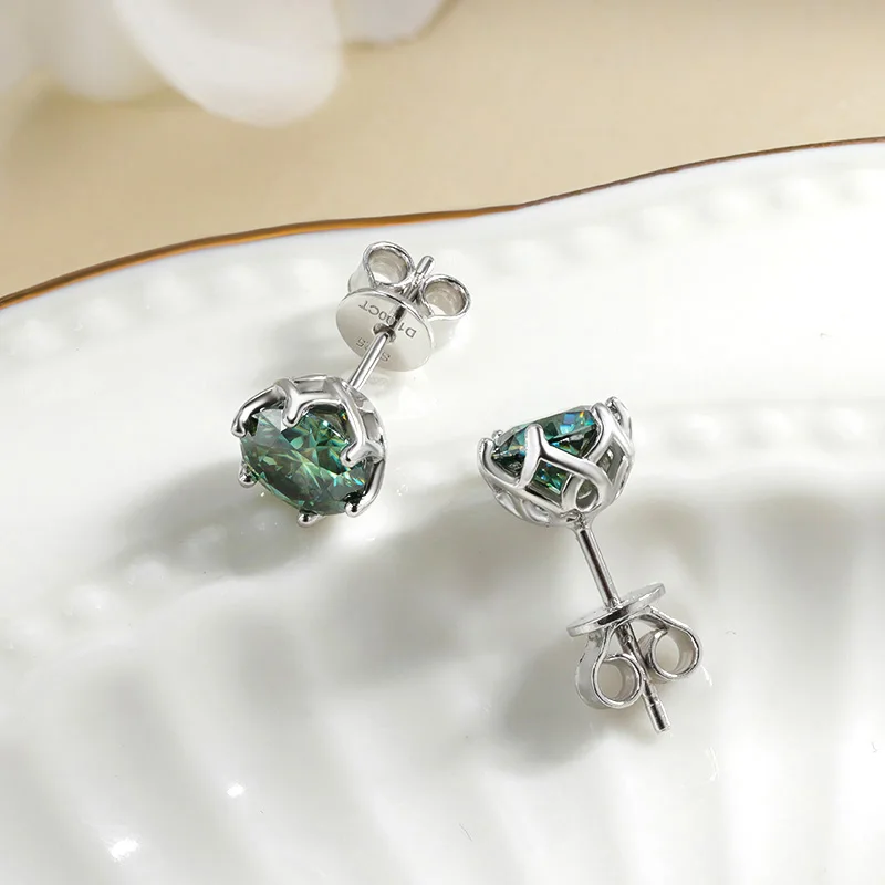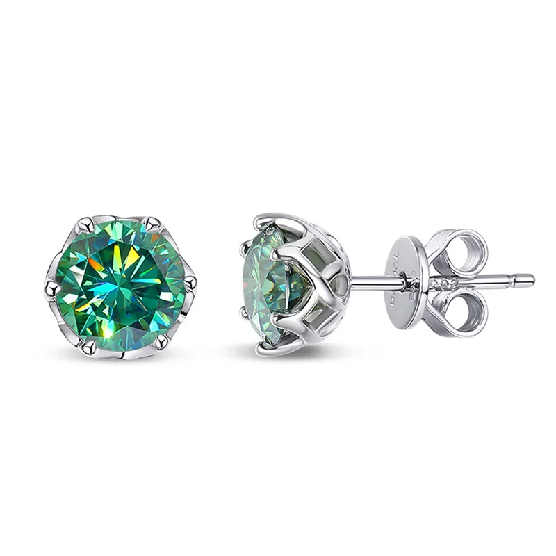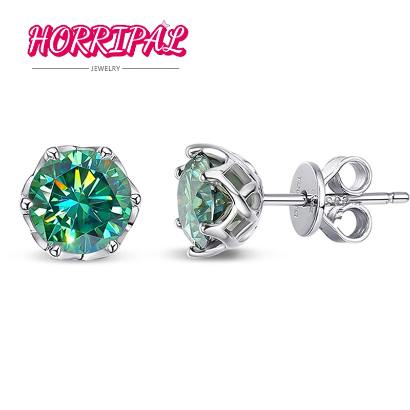 HORRIPAL 0.5-2CT Real Green Moissanite Stud Earrings S925 Sterling Silver 18k White Gold Plated GRA Lab Diamond Jewel Woman Man