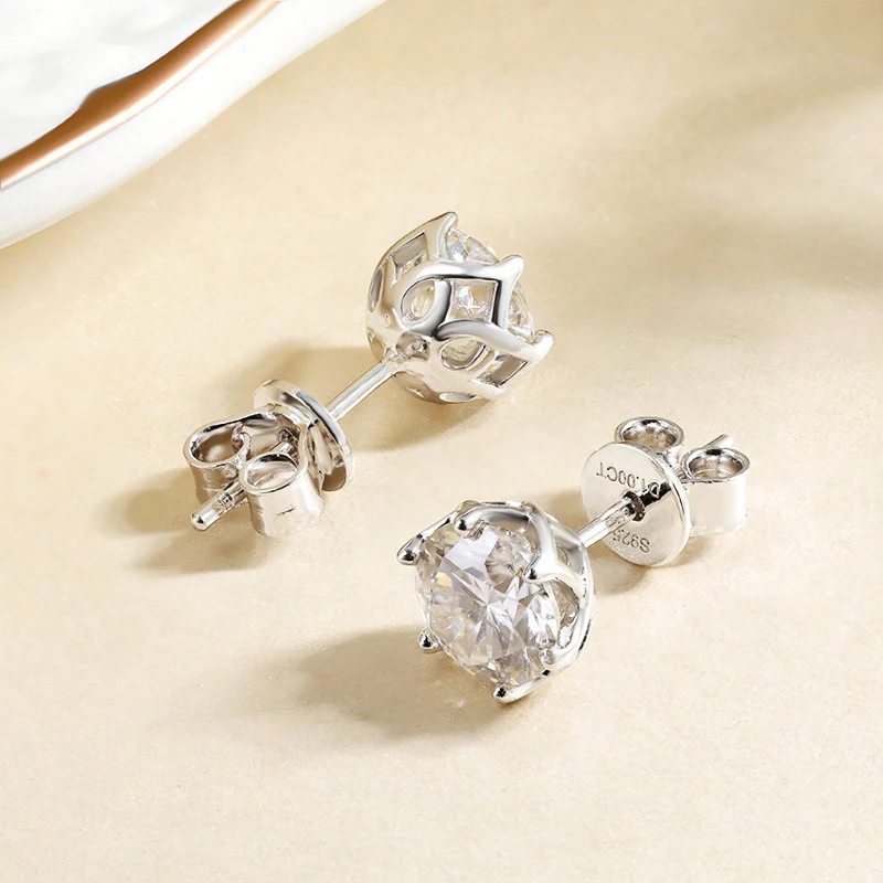 - moissanite size: 5mm 0.5ct, 6.5mm 1ct, 8mm 2ct