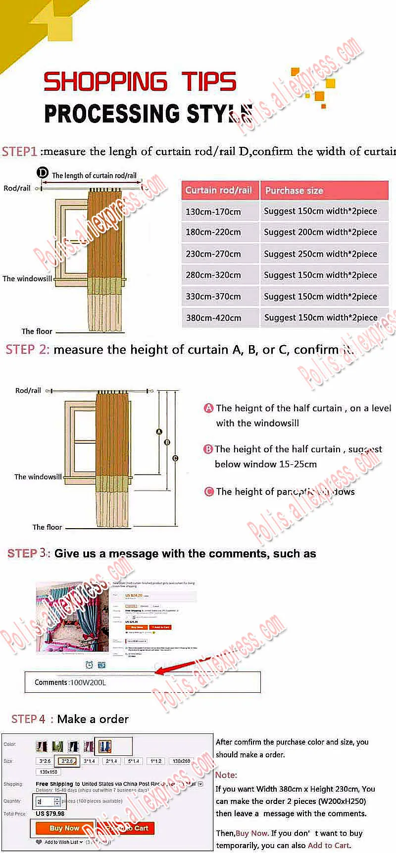 If your Curtain high need other size, (not 270 cm or not 106 inch) please tell us.