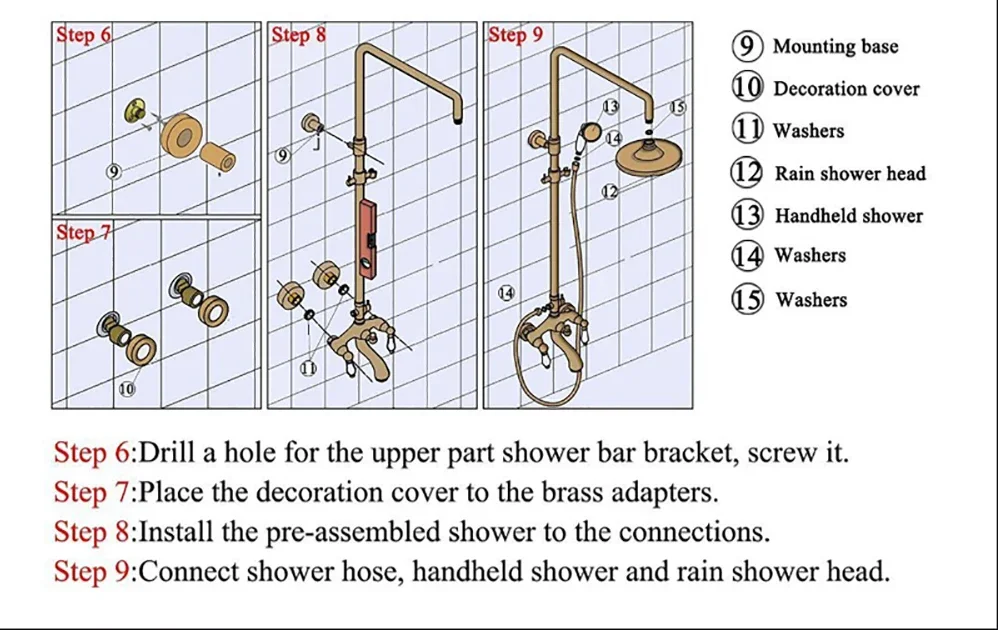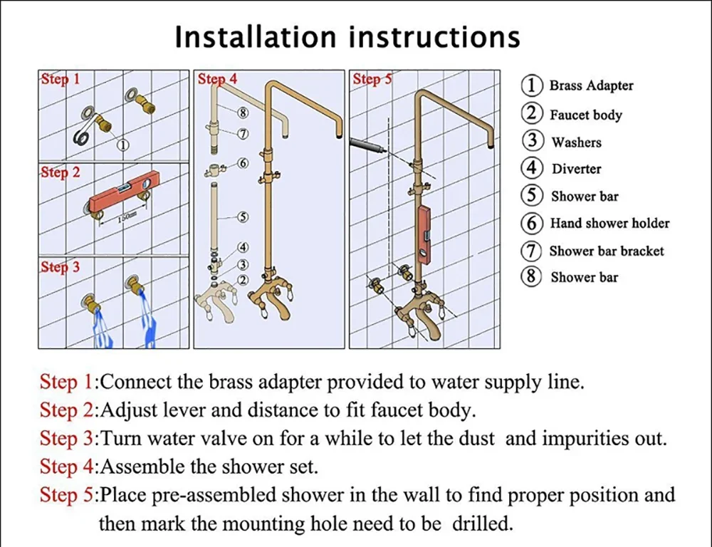 【Height Adjustable】The height of the shower column and hand shower can be adjusted to meet the requirements of different heights. you can freely adjust the shower rod to the height you want