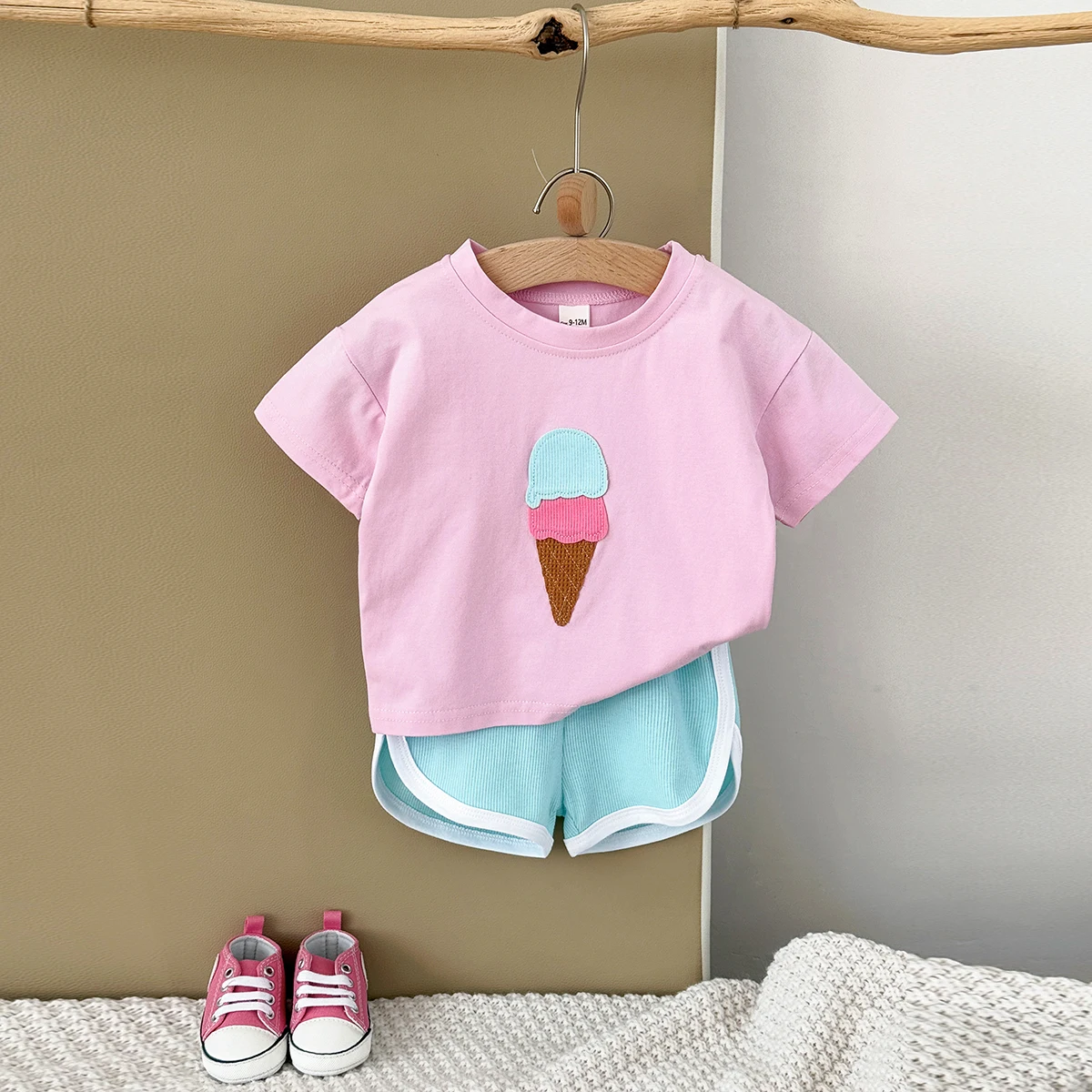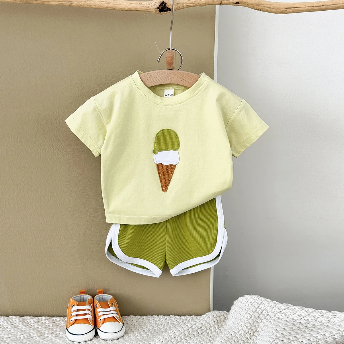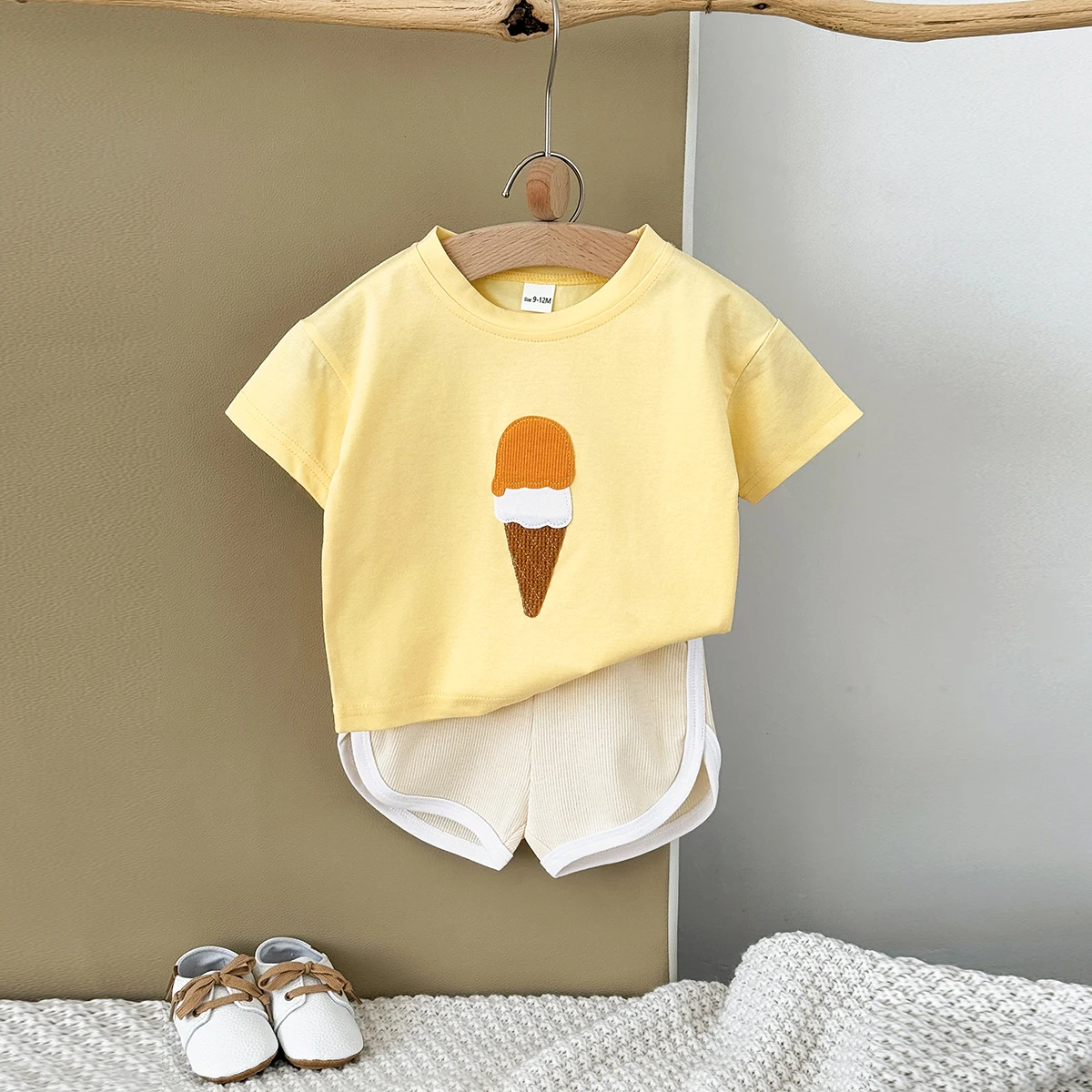 Hot Sale 2Pcs/set Baby Clothes Ice cream Patchwork T-Shirts+Loose Shorts Boys Girls Infant Sets Toddler Summer Kids Clothes