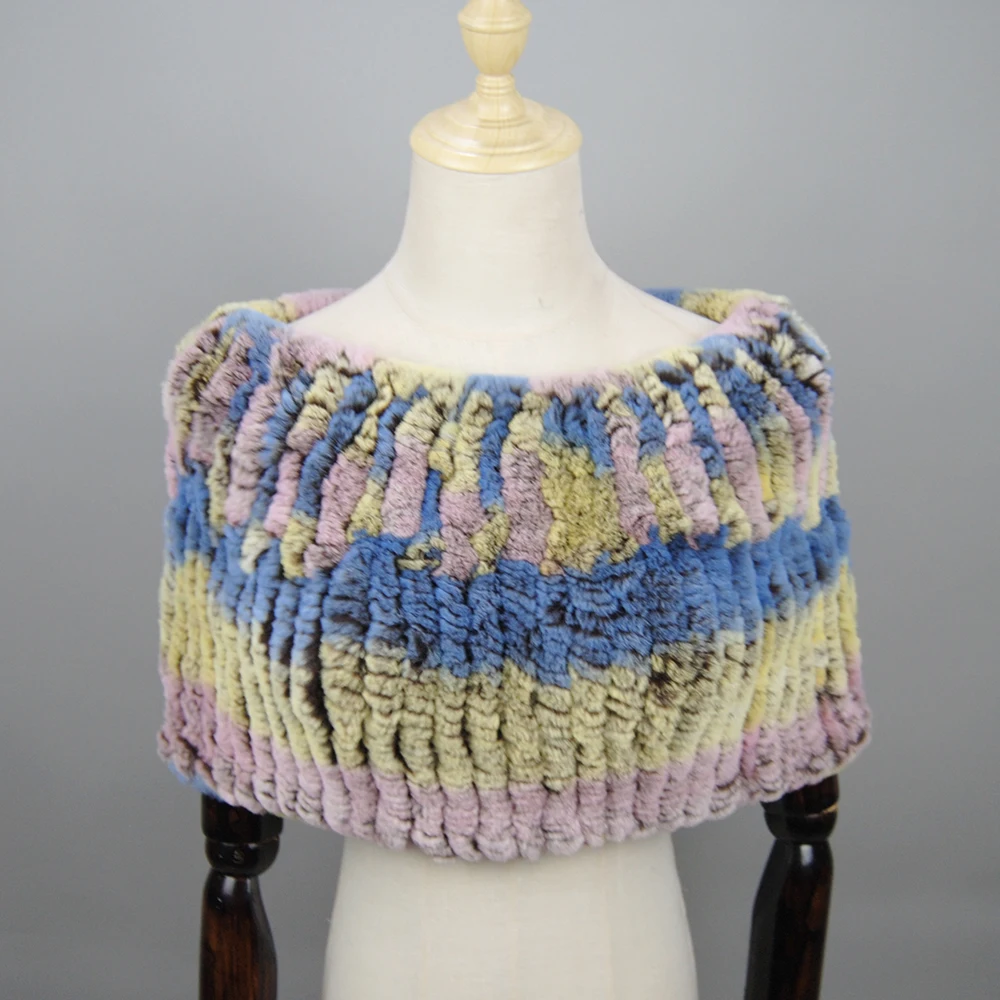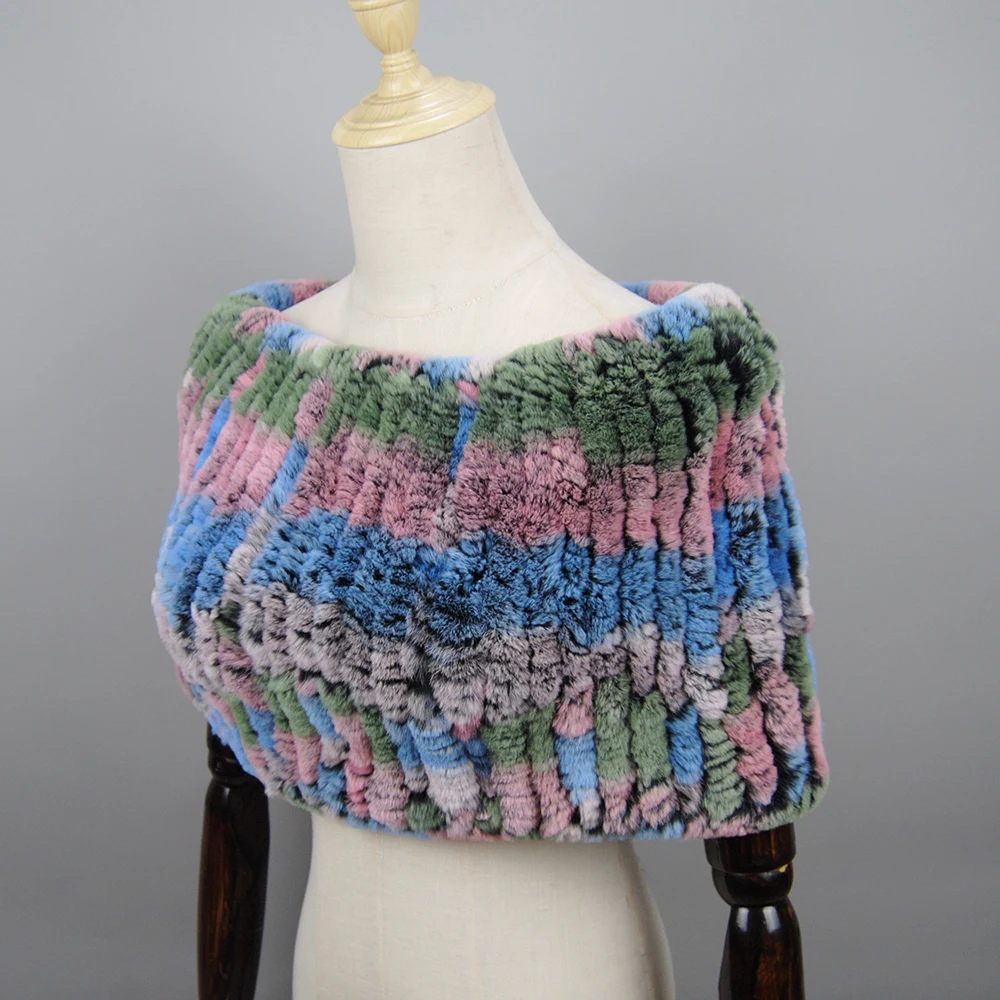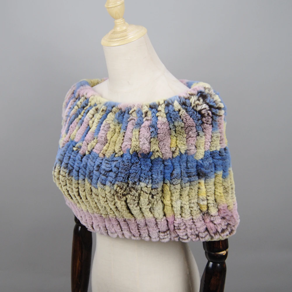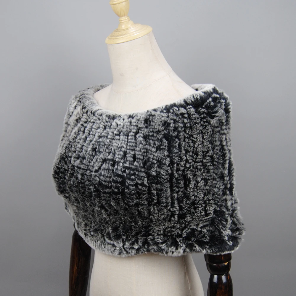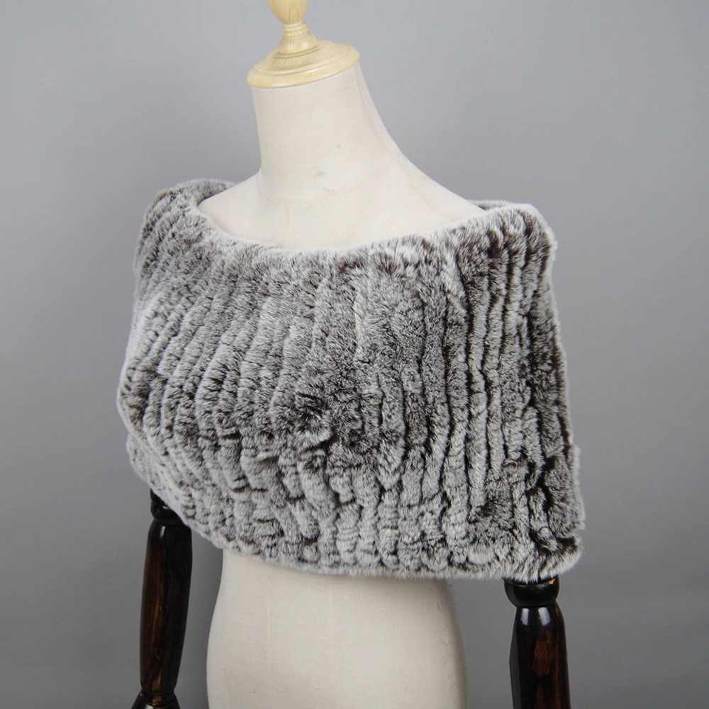 Hot Sale Women Real Rex Rabbit Fur Shawl Natural Real Knitted Real Rex Rabbit Fur Poncho Scarf Autumn Winter Rabbit Fur Pashmina