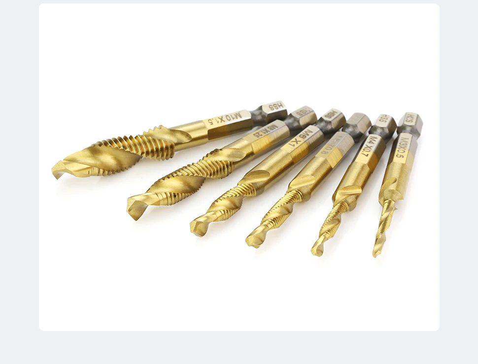 Hss Titanium Plated Tap Drill Bit Countersink Deburr Set High Speed Compound Screw Thread Bits Hand Tools 6pcs M3-M10