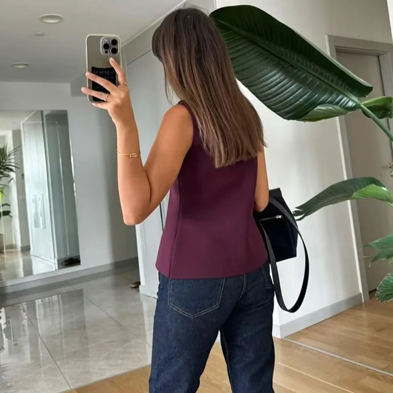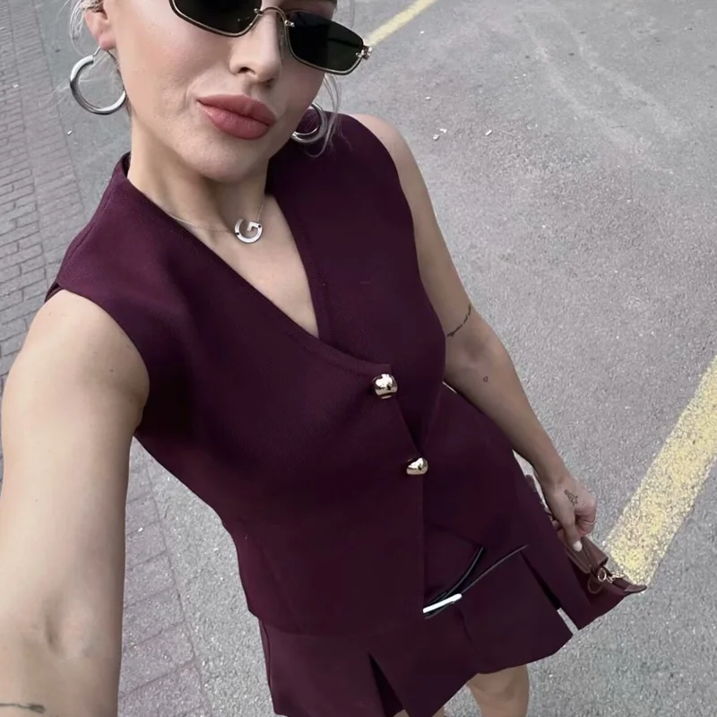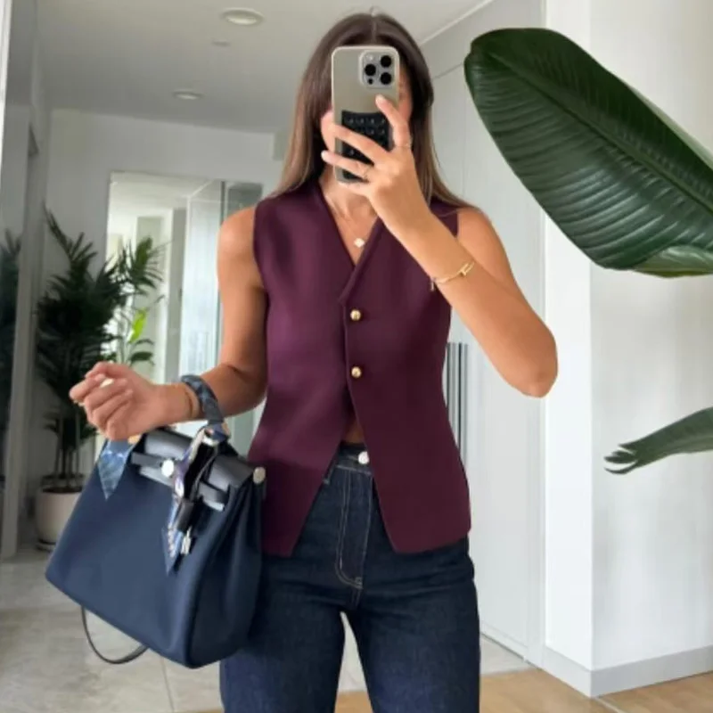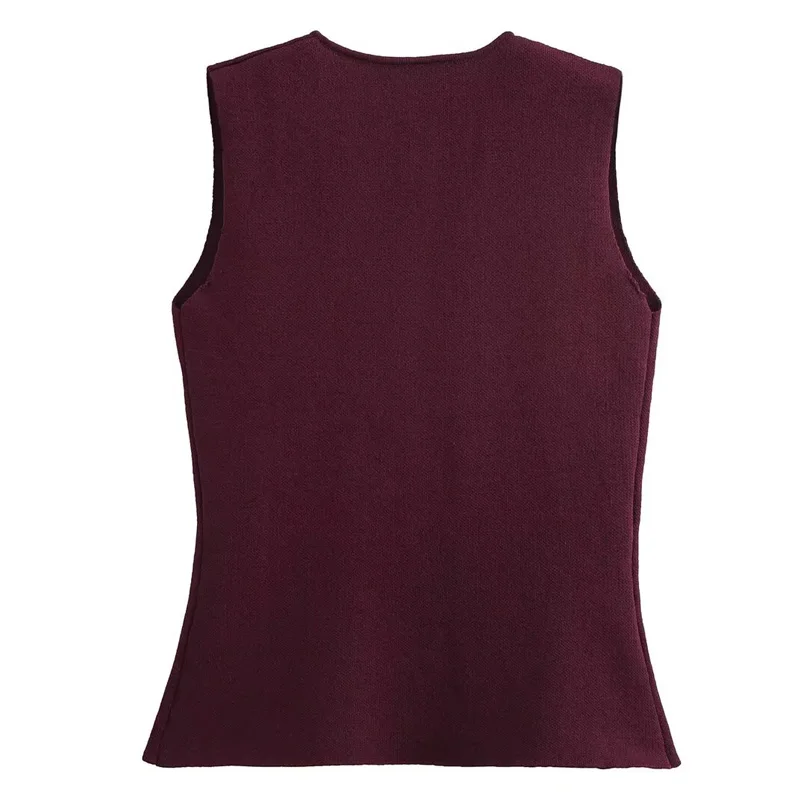 HXAO 2024 Woman Burgundy Knit Vest Women’s Vest Fall Crop Sleeveless Waistcoat Bustier V Neck Sweaters New Knitwear Hot Cardigan