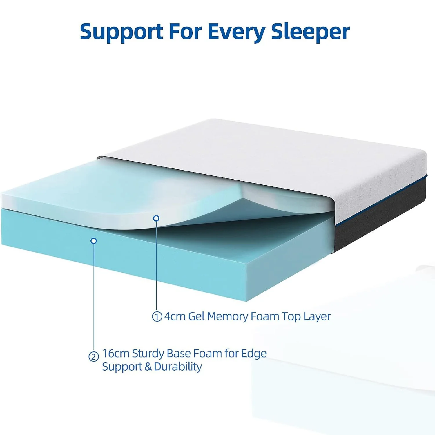 4cm Gel Memory Foam Top Layer / 16cm Sturdy Base Foam for EdgeSupport & Durability