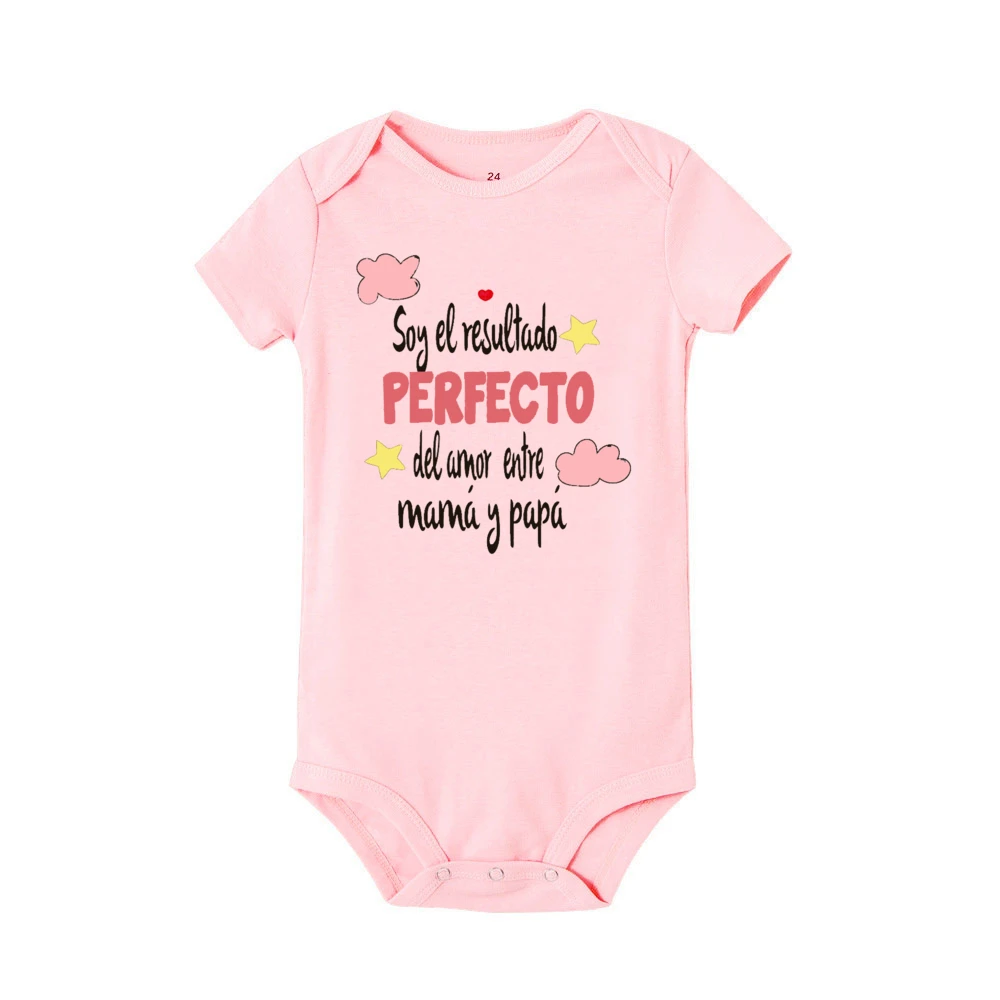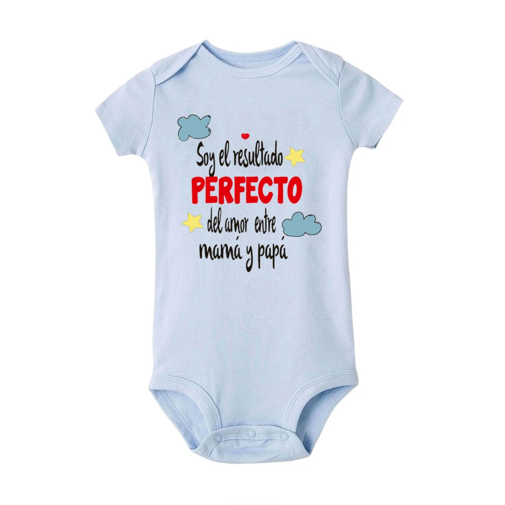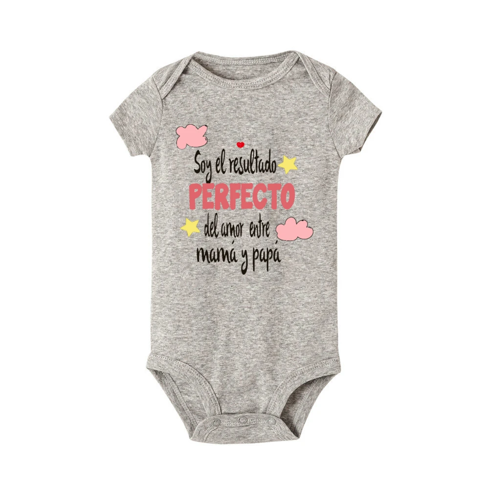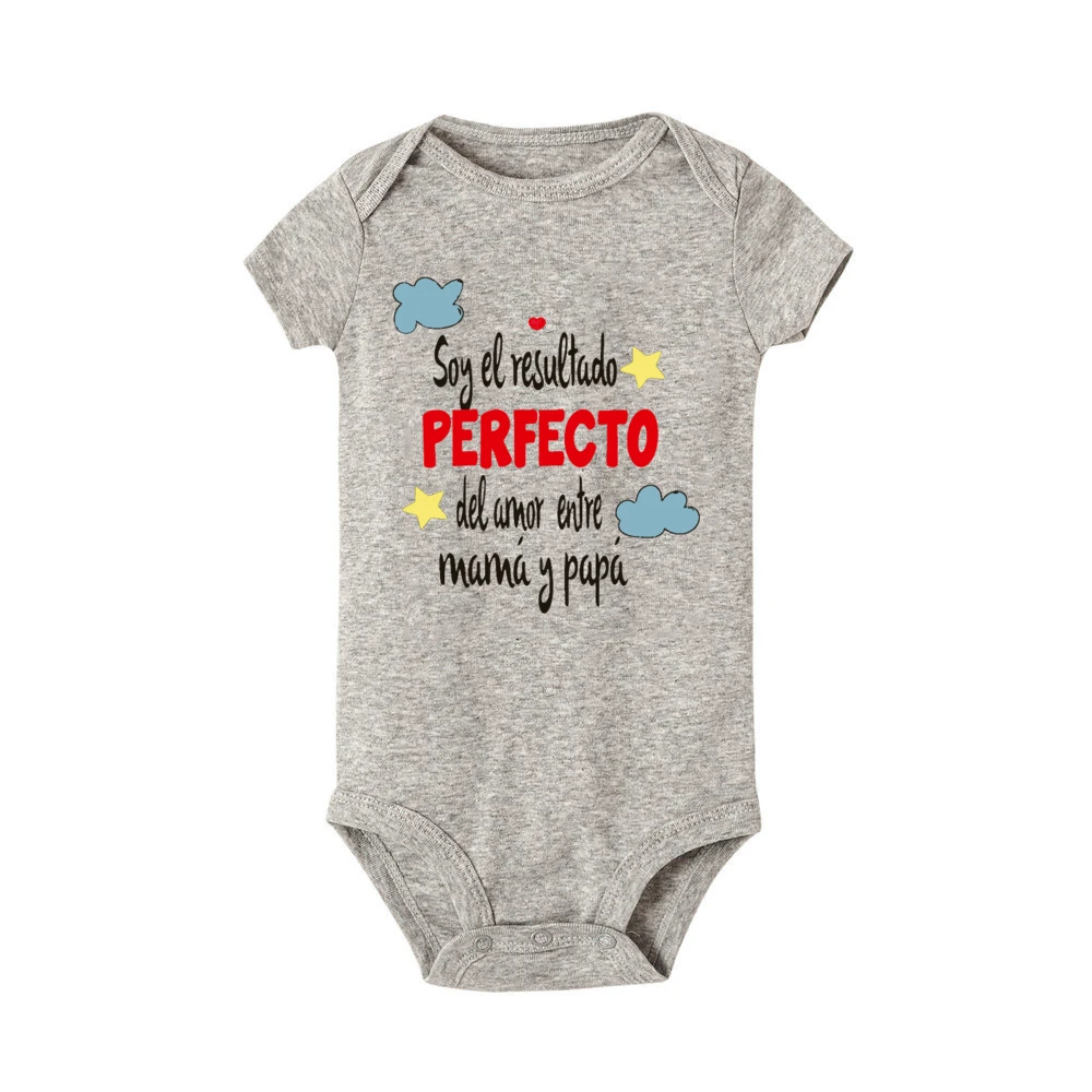 I Am The Perfect Result of The Love Between Mom and Dad Baby Romper Spanish Print Infant Bodysuit Newborn Short Sleeve Jumpsuit