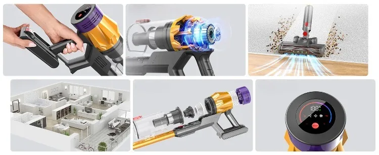 Features an intuitive and user-friendly interface that displays remaining battery life, current suction mode, and other essential information for a seamless cleaning experience.