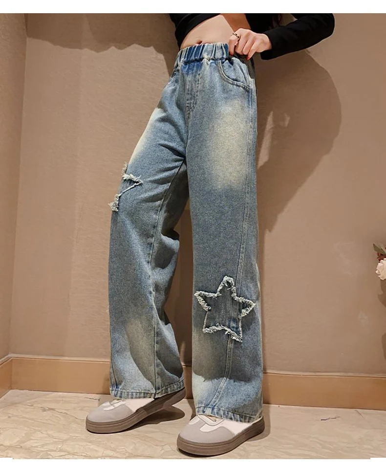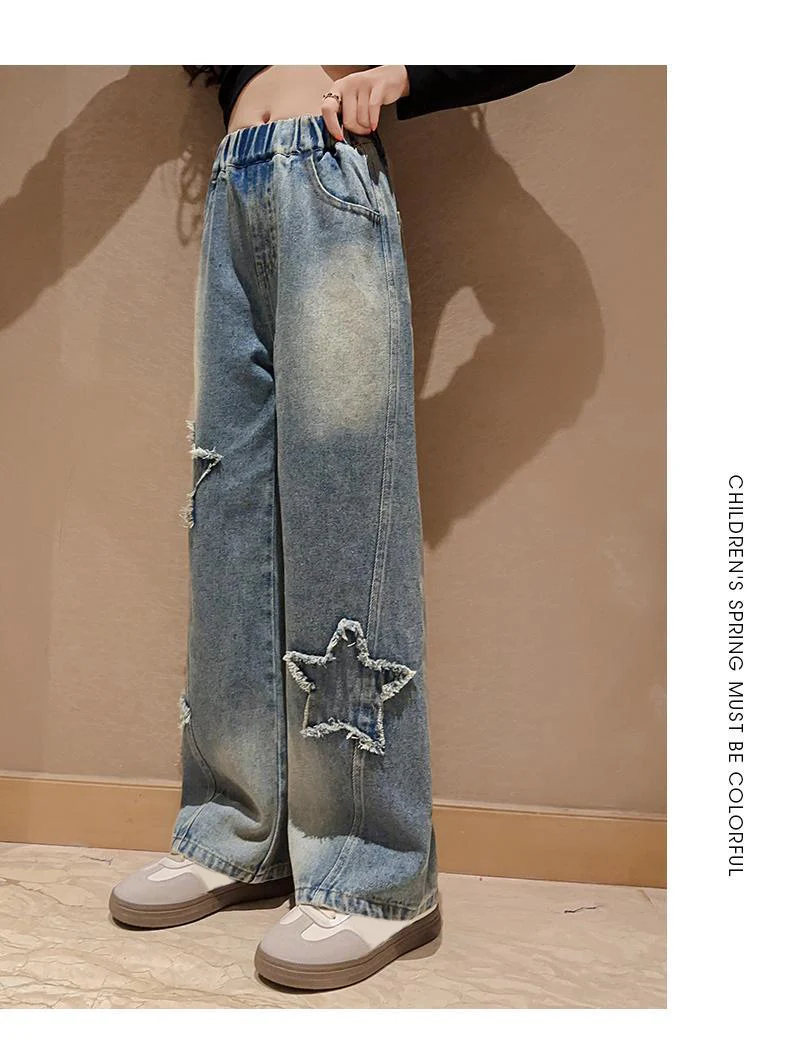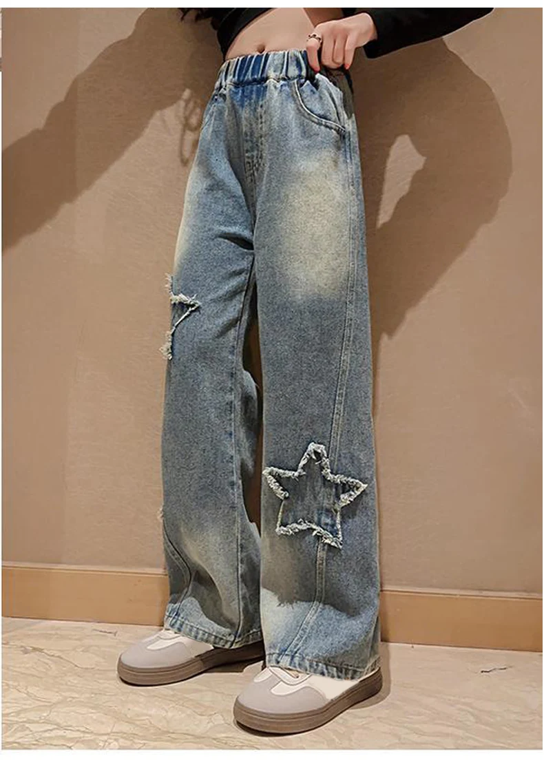 IENENS High Waist Jeans Girl Straight Loose Wide-leg Pants Spring and Autumn Korean Baggy Jeans Fashion Kids Denim Trousers