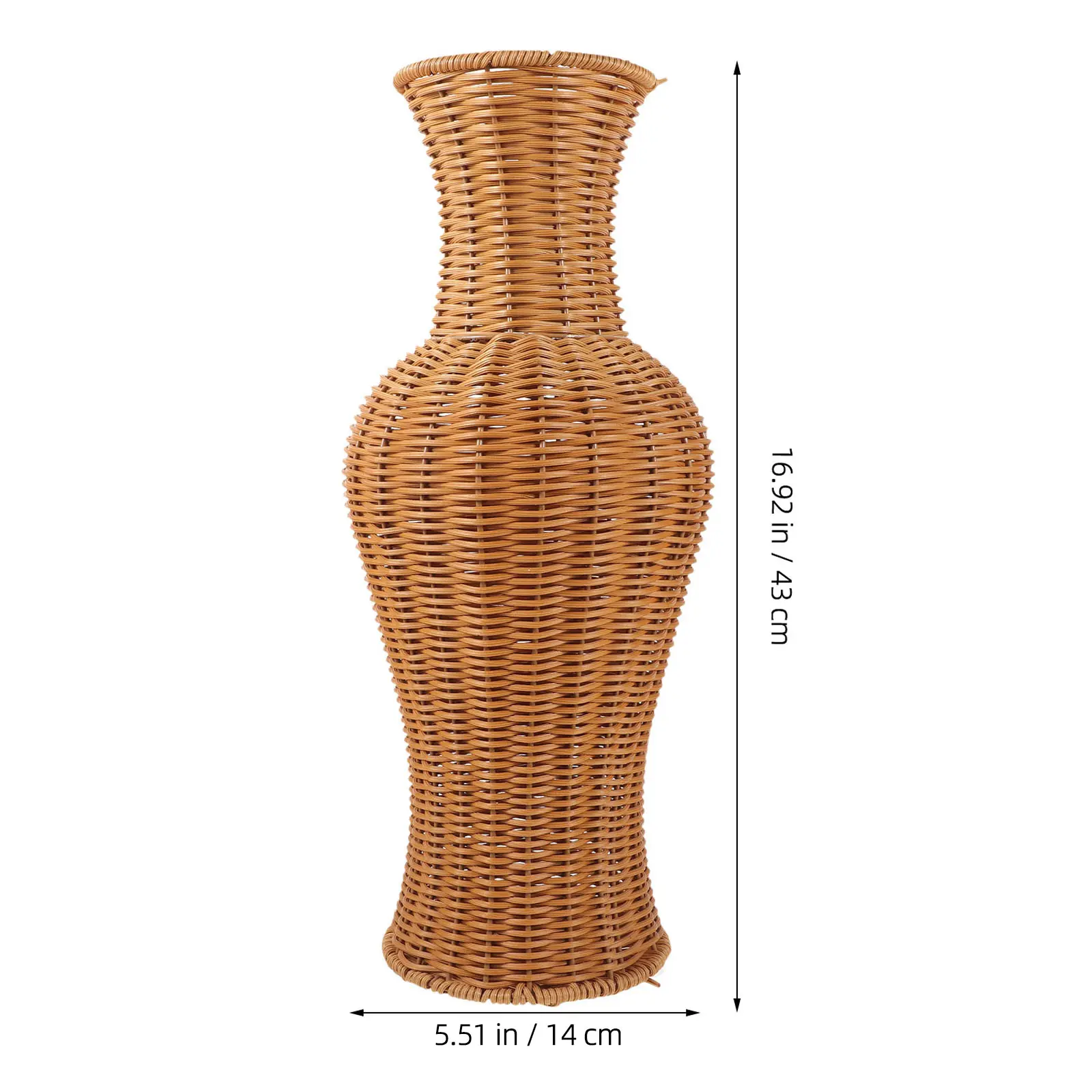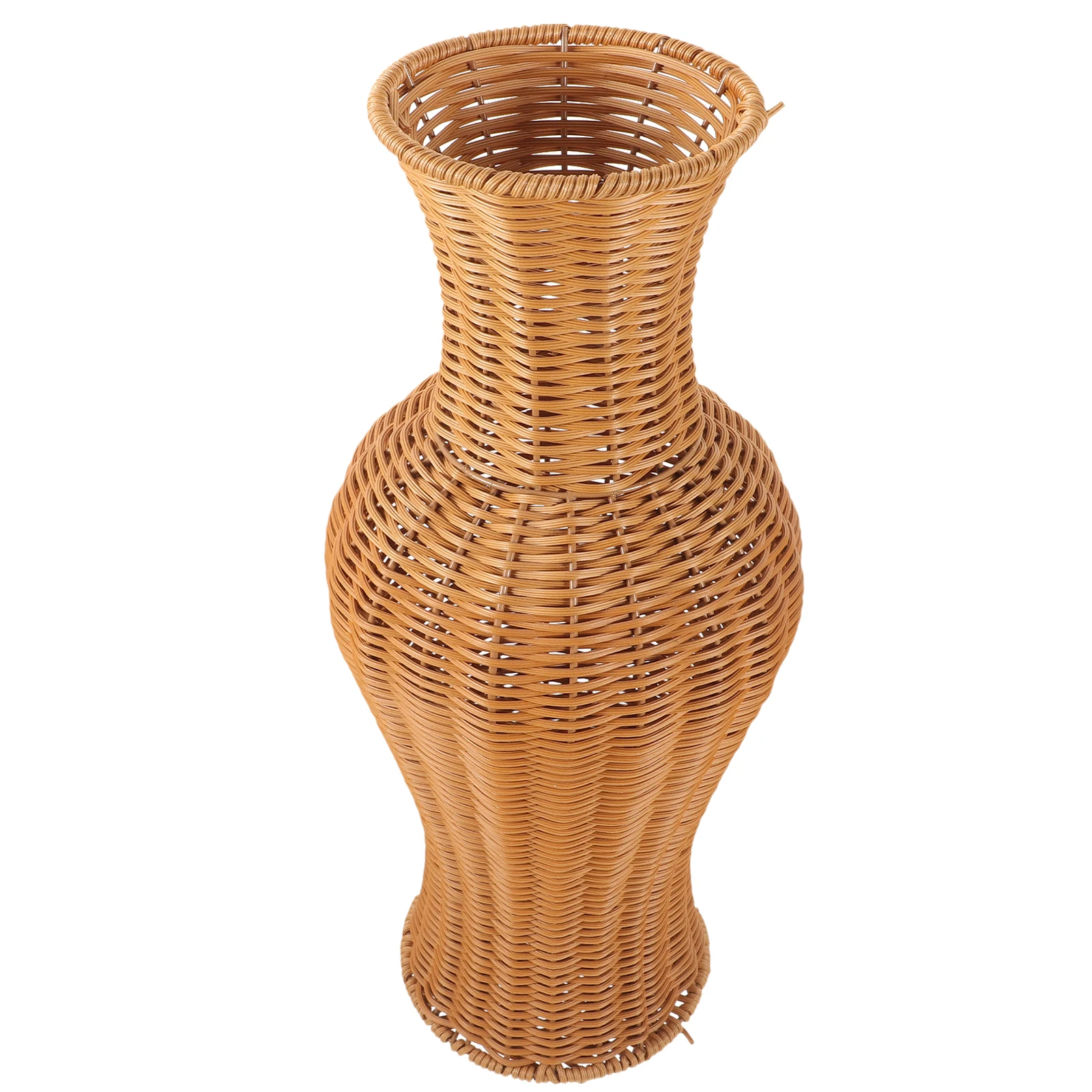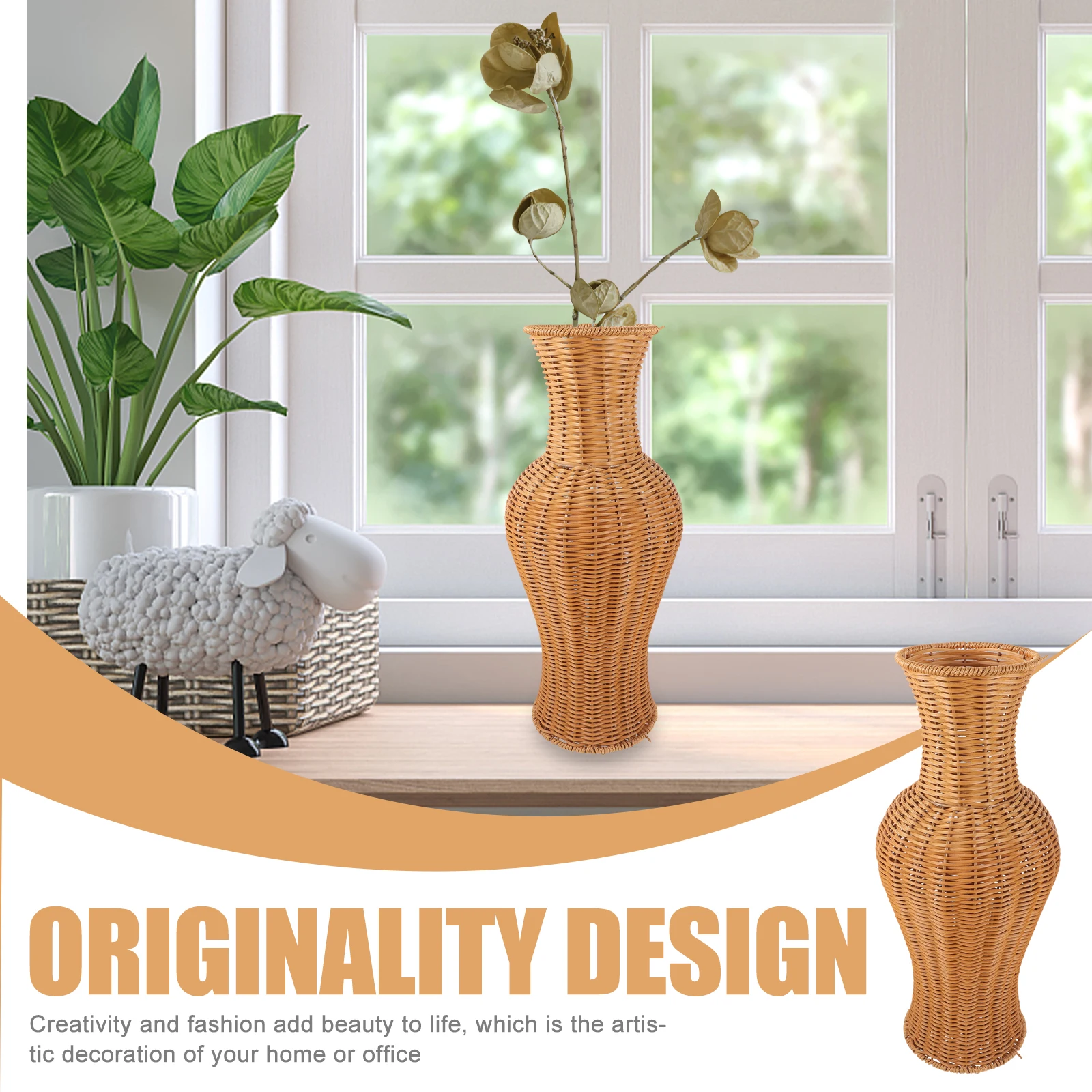 Imitation Rattan Floor Vase Tall Decorative Woven Plastic Vase for Home Flowers Wedding Photo Prop Simple Natural Style