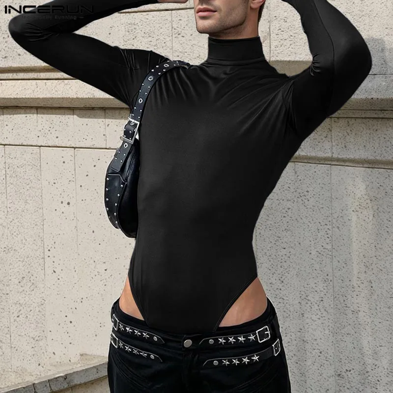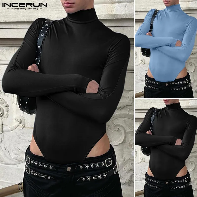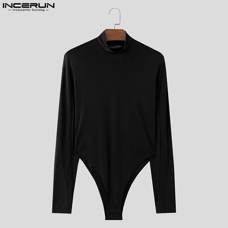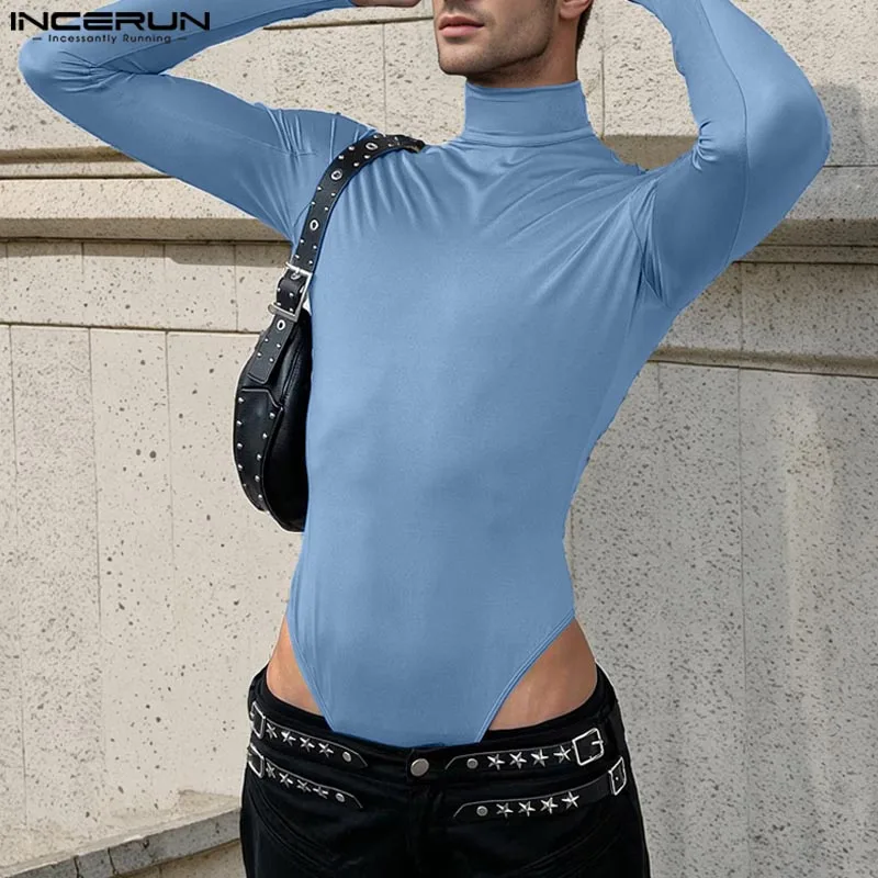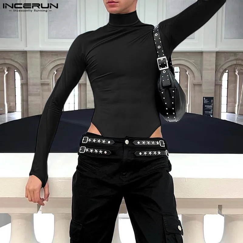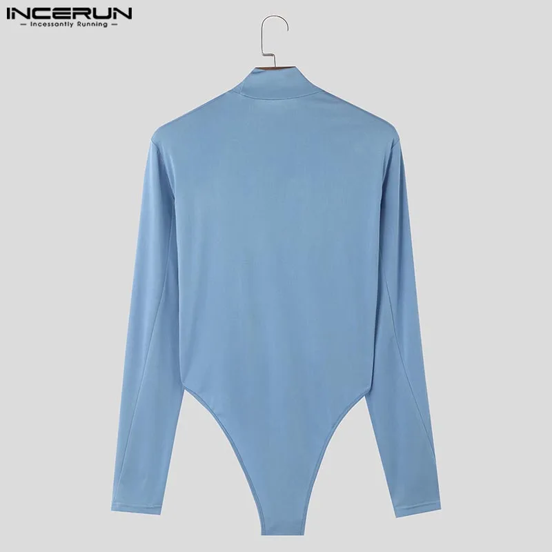 INCERUN 2024 American Style Rompers New Men Stylish Solid Jumpsuits Sexy Casual Streetwear Thimble Design Long Sleeved Bodysuits
