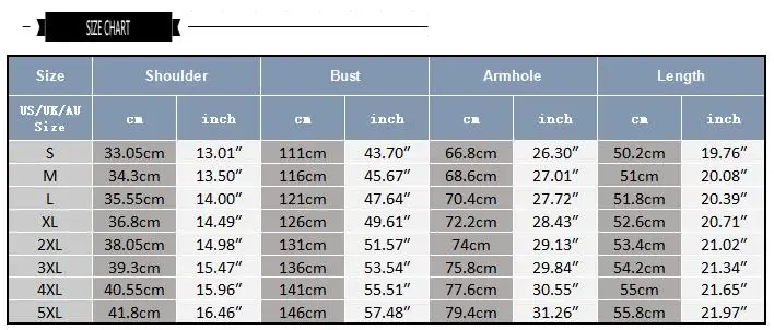 Size:S,M,L,XL,2XL,3XL,4XL,5XL
