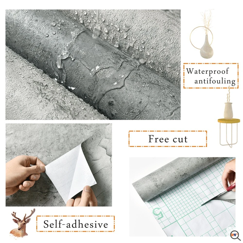Industrial Cement Grey Clothing Store Living Room Decor Contact Paper Vinyl Self Adhesive Waterproof Wallpaper Wall Stickers