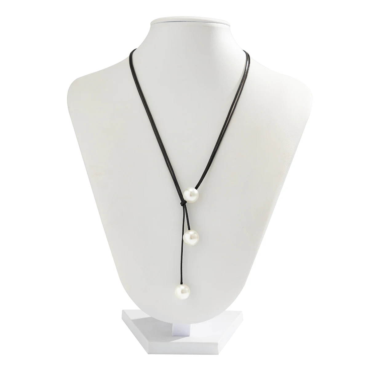IngeSight.Z Punk Black Leather Cord Wax Rope Chain Necklace for Women Gothic Three Pearl Pendant Adjustable Necklaces Jewelry