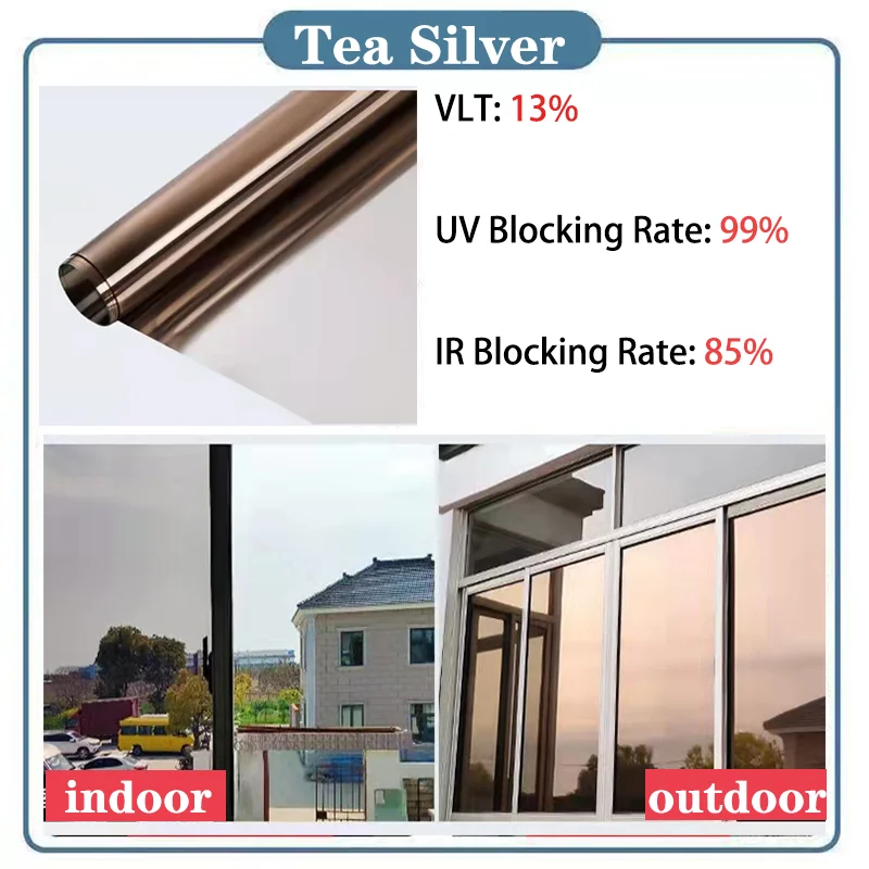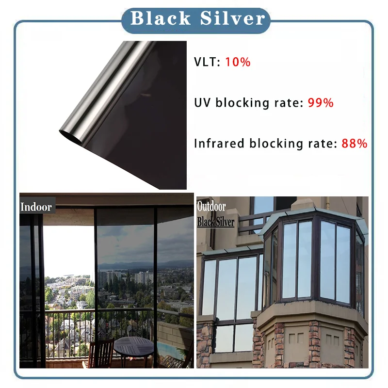 UV solvents added at the bottom, the window reflective film can blocks out 99% of UV rays, and reduces fading and aging of interior furnishings,anti-scratch layer on the surface, friction resisting, won’t fade nor blister, easy to remove, economical and practica”