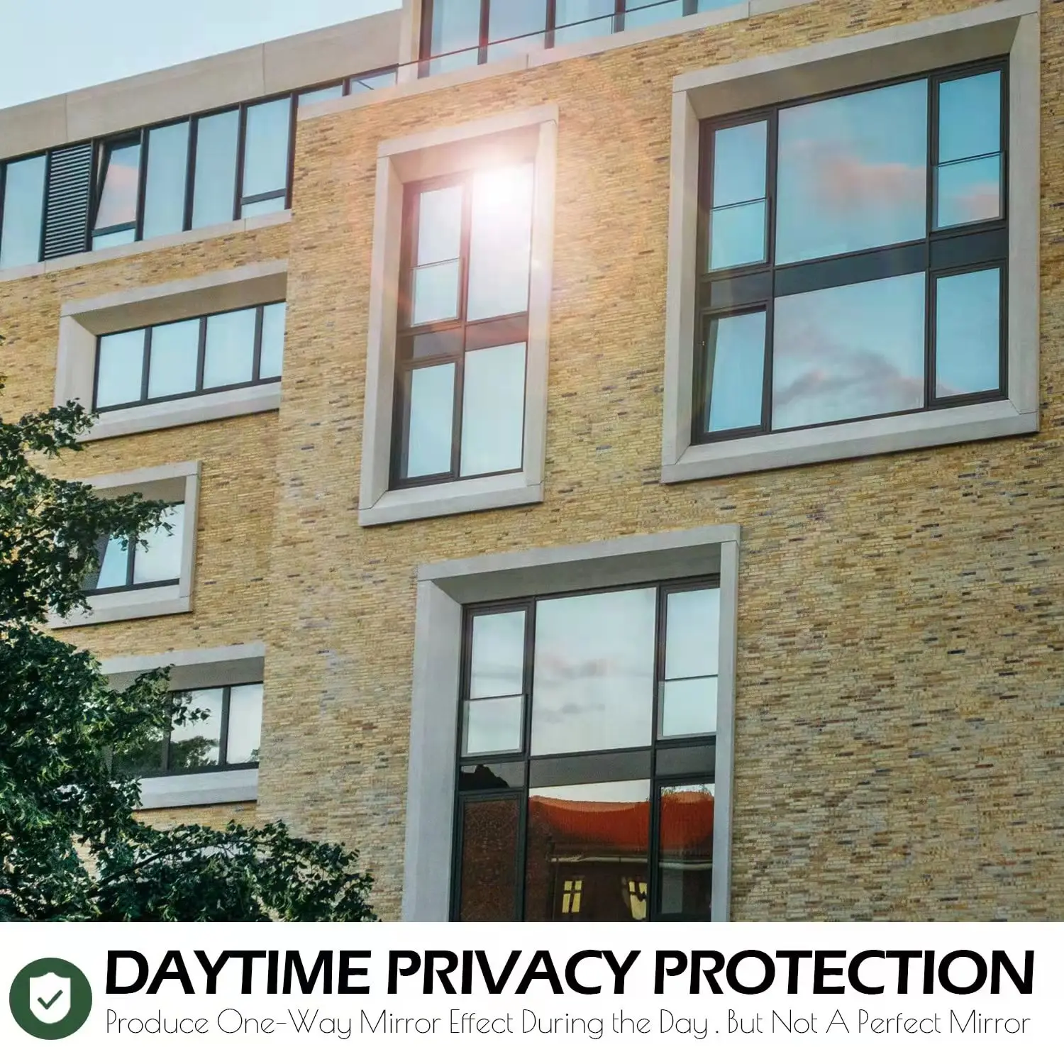 The one way mirror window film provides great intended privacy during daytime only; the mirror-effect is reversed at night since the interior will be exposed to more light than the exterior. The side with the most light will have the mirror-like appearance