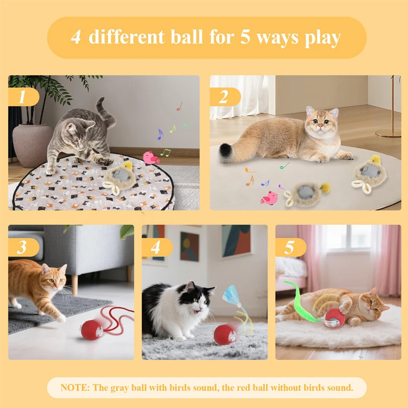 Working in the pocket: Put the electric rolling cat ball toy into the baggie makes the toy more mysterious, stimulate the cats/kitty/kittens pouncing, pawing, and scratching the baggie toys,no worries of finding toys. This motorized cat toy also will help to stop your cat clawing and scratching your furniture.