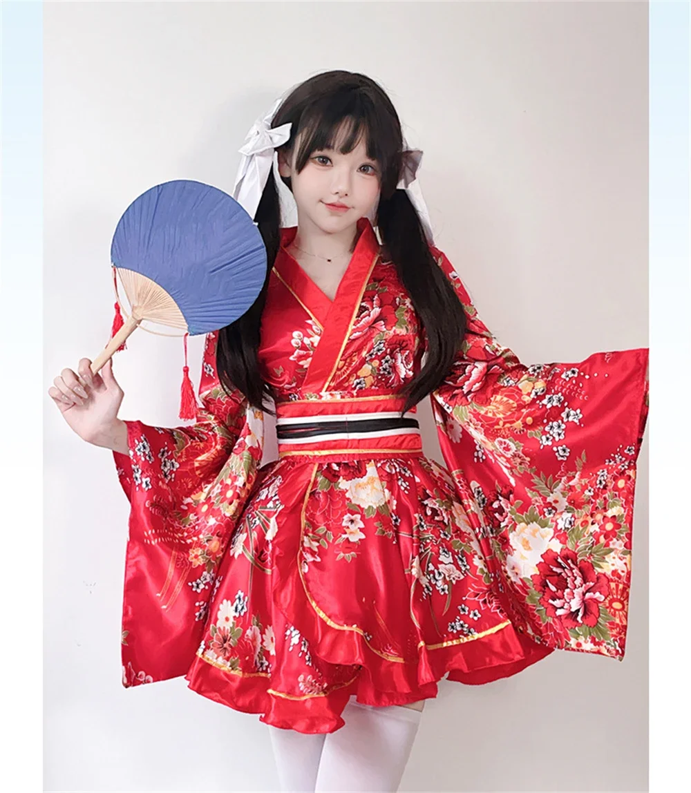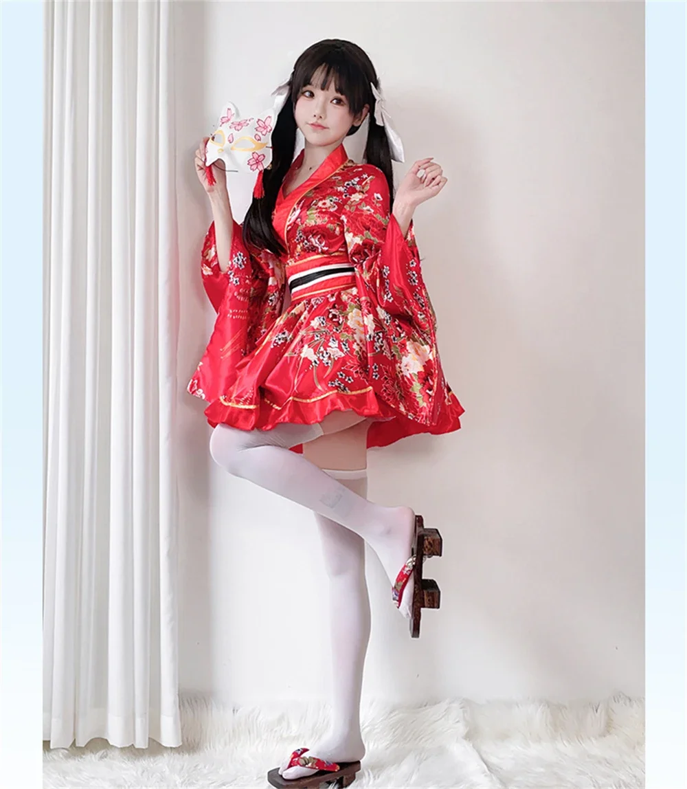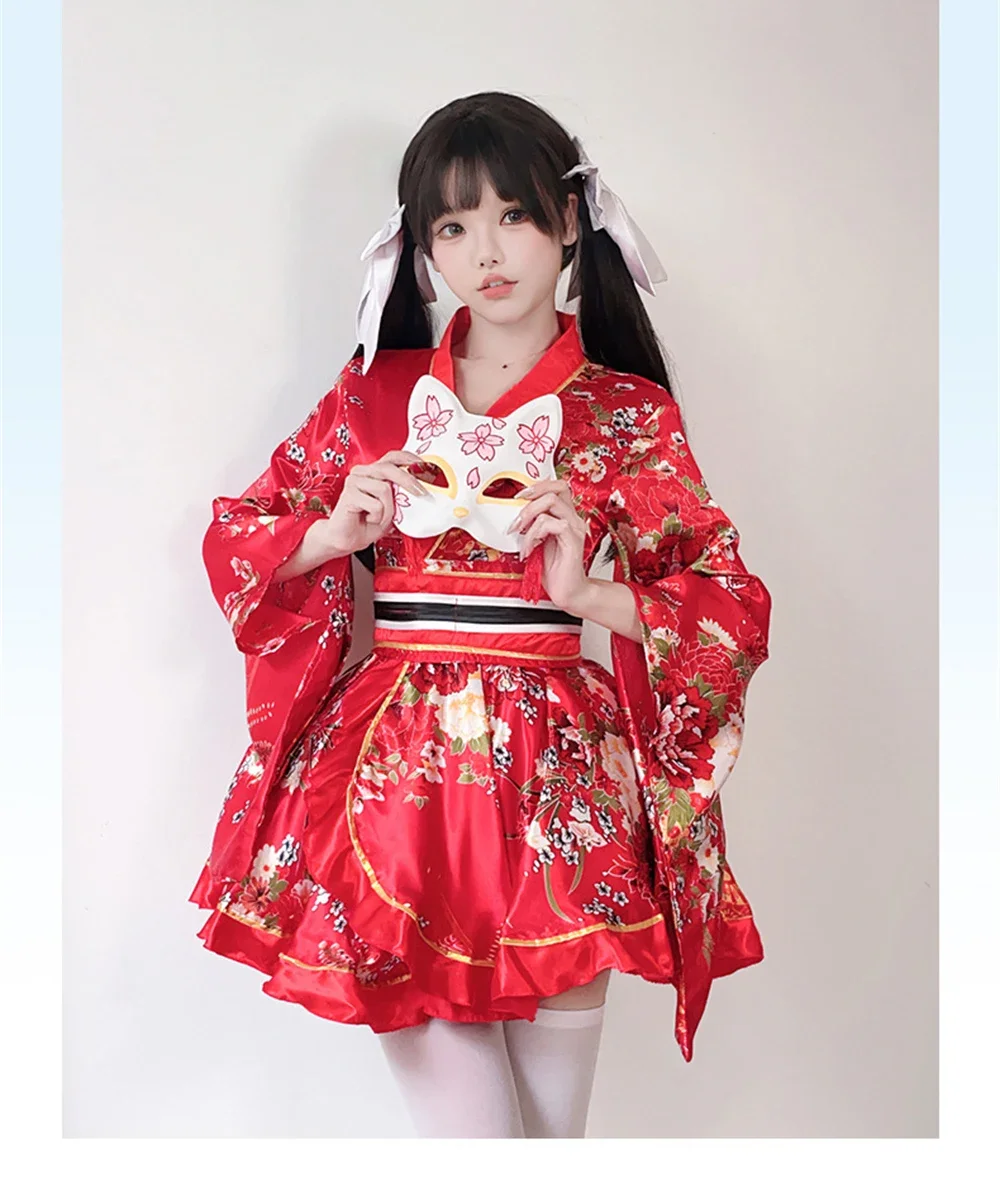 Japanese Modified Kimono Dress For Women Bathrobe Summer Cosplay Costume Anime Halloween Costumes Sexy Sweet Geisha Kawaii Girl